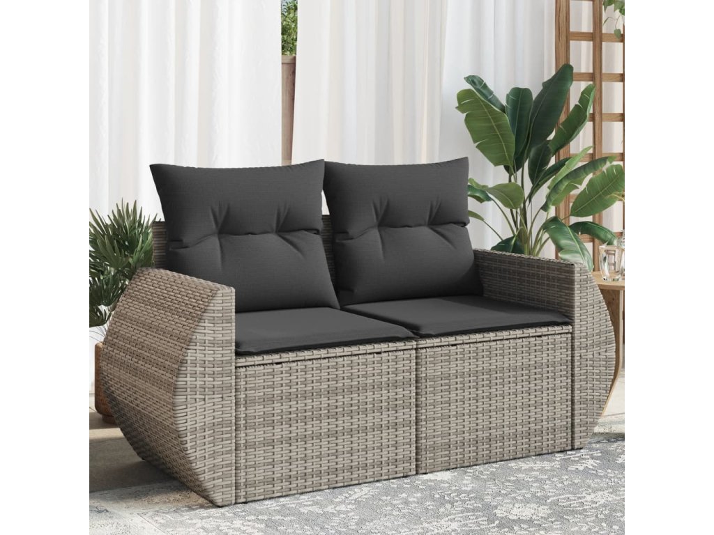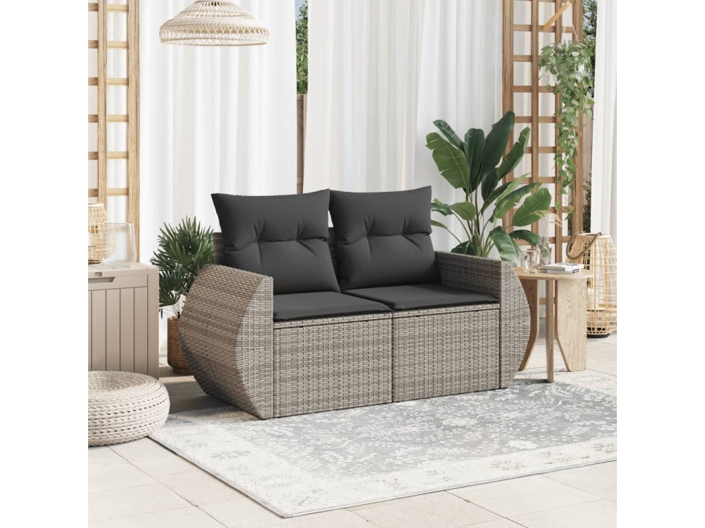 vidaXL Záhradná pohovka s vankúšmi 2-miestna sivá polyratanová