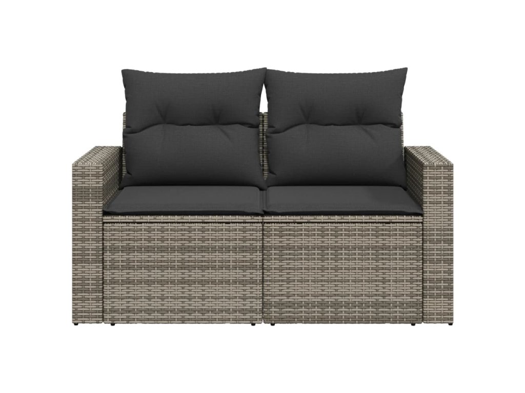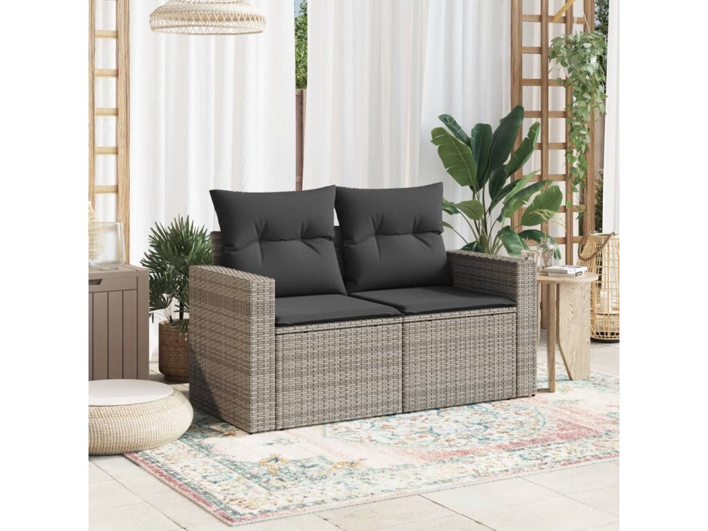 vidaXL Záhradná pohovka s vankúšmi 2-miestna sivá polyratanová