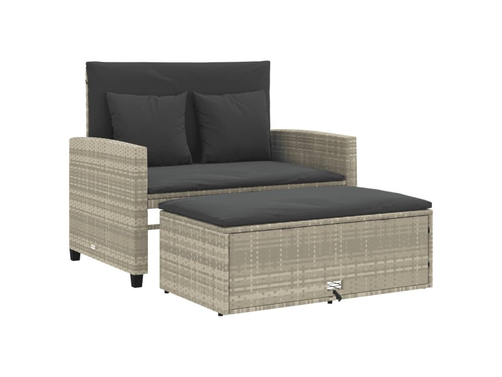 vidaXL Záhradná pohovka s vankúšmi 2-miestna svetlosivá polyratanová