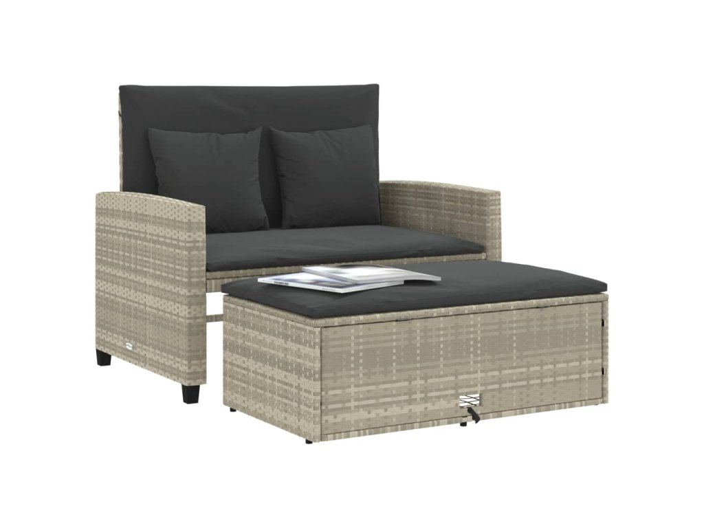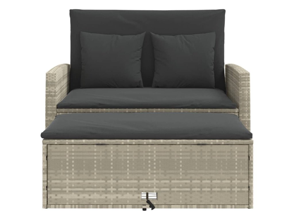 - Všestranná funkčnosť: Tento vonkajší nábytok sa dá použiť ako dvojmiestna lavica alebo rozkladacia pohovka. Jednoducho ju môžete zmeniť na posteľ sklopením operadla a vytiahnutím taburetky spod lavice. Podporné panely za operadlami zvyšujú stabilitu postele.