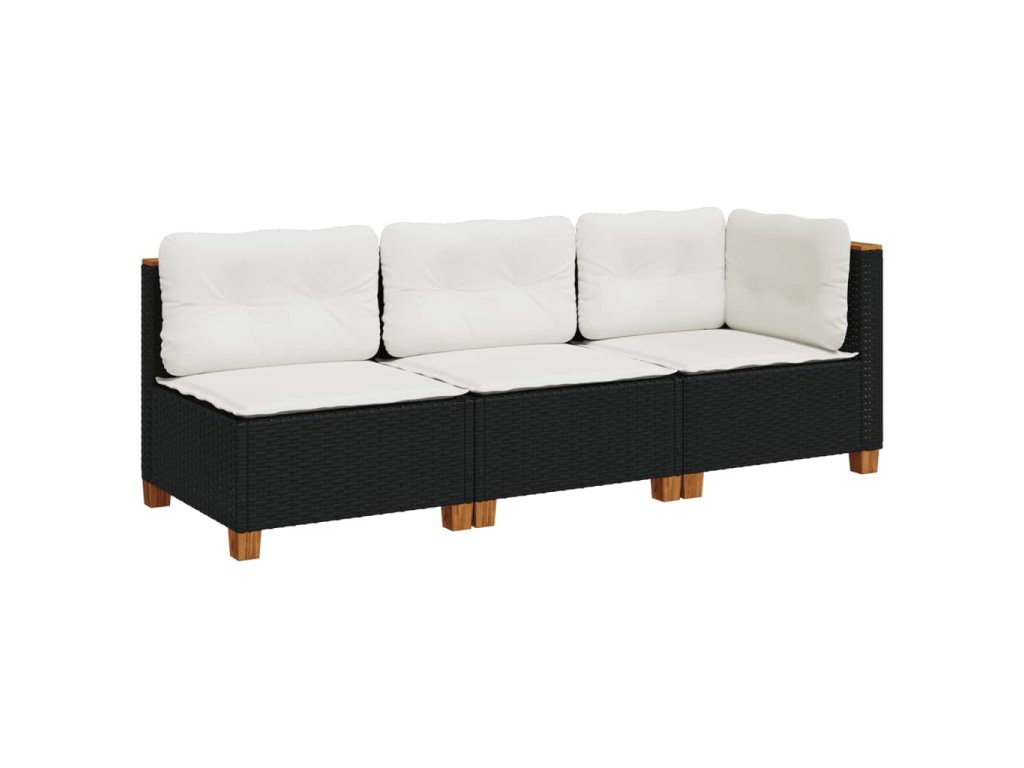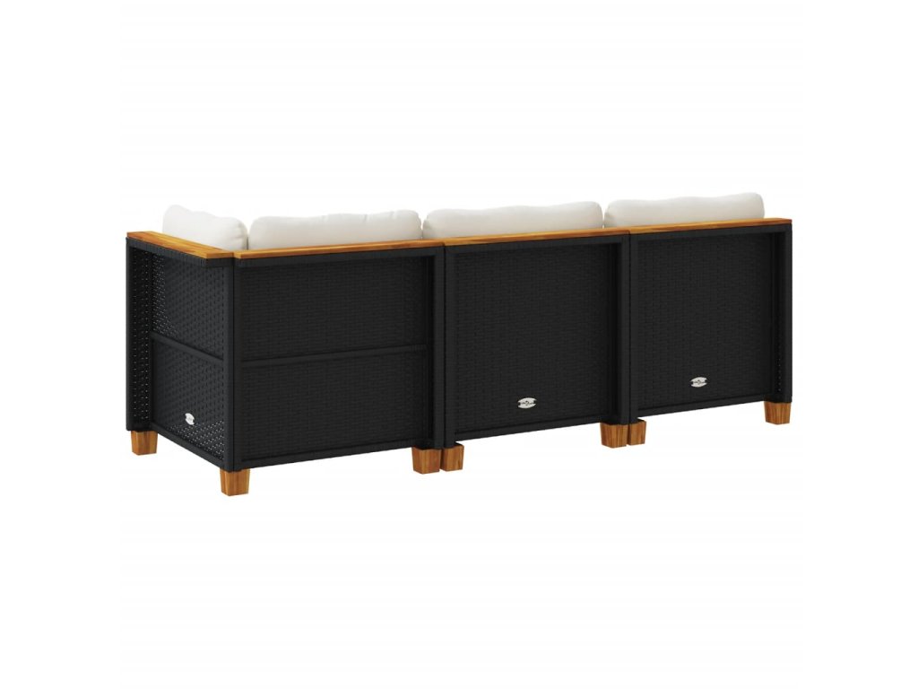 vidaXL Záhradná pohovka s vankúšmi 3-miestna čierna polyratan