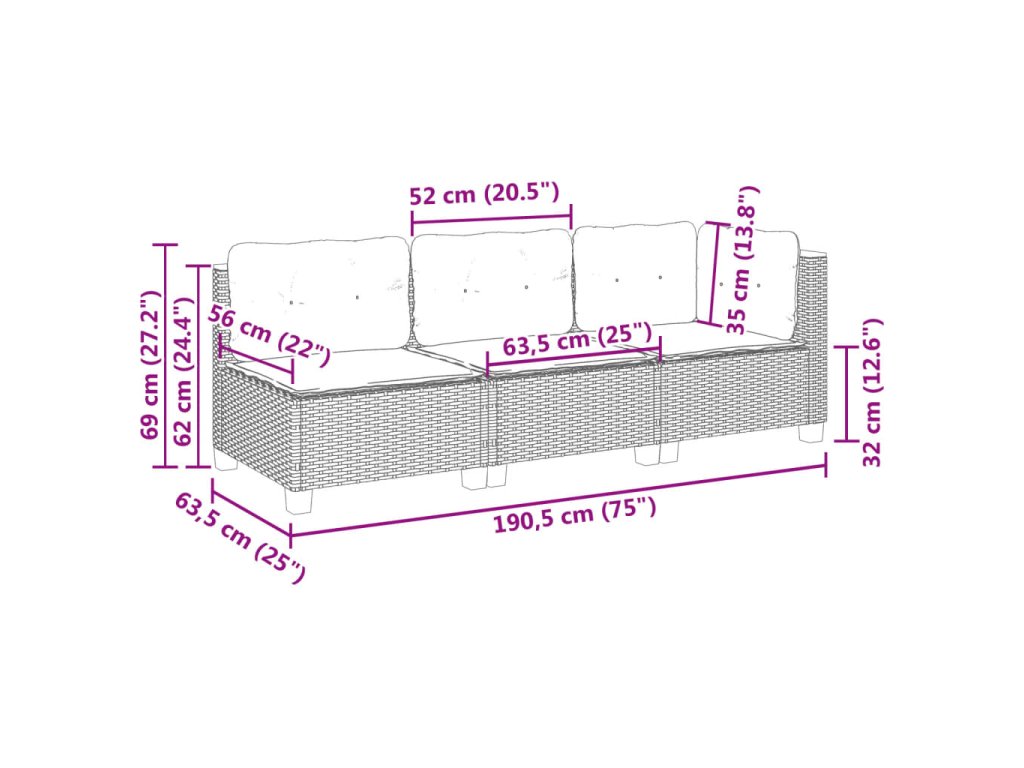 - Celkové rozmery: 190,5 x 63,5 x 62 cm (Š x H x V)