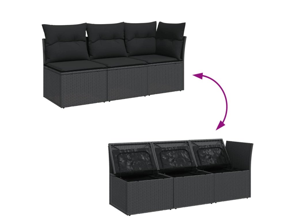 vidaXL Záhradná pohovka s vankúšmi 3-miestna čierna polyratan
