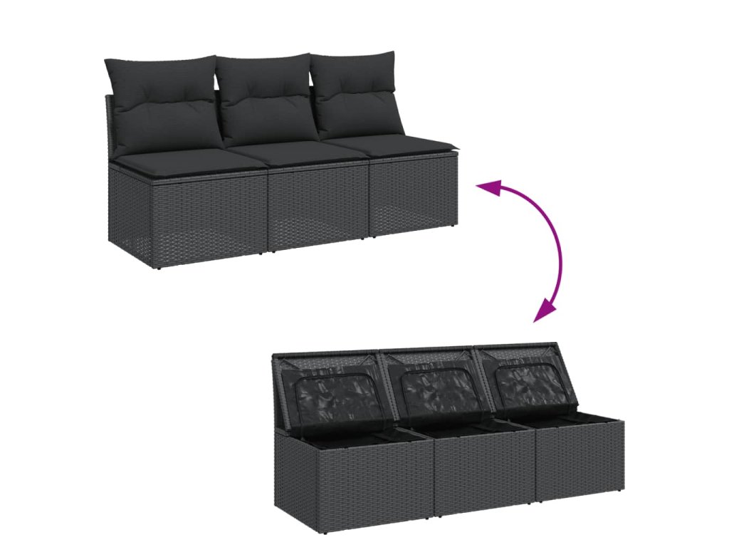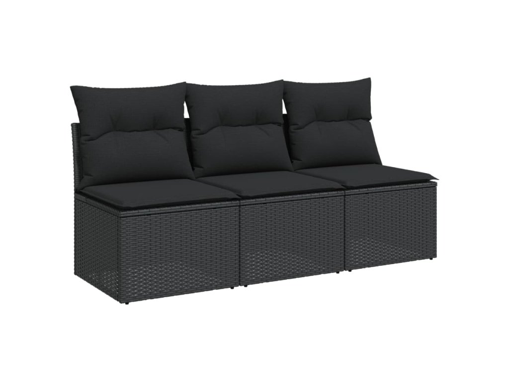 vidaXL Záhradná pohovka s vankúšmi 3-miestna čierna polyratan