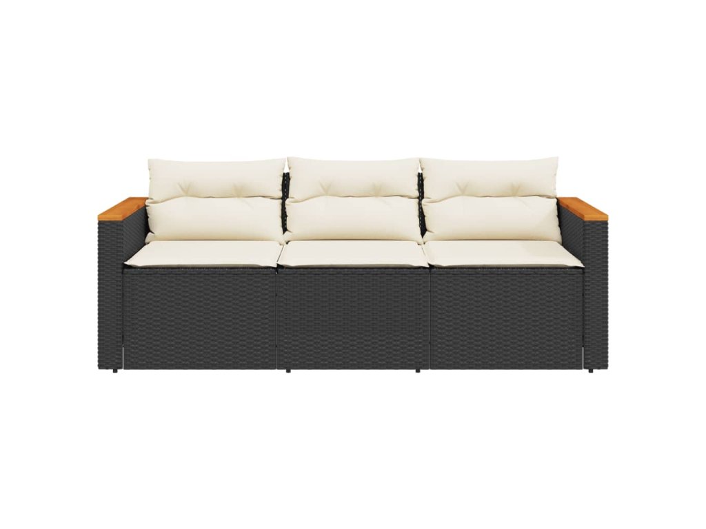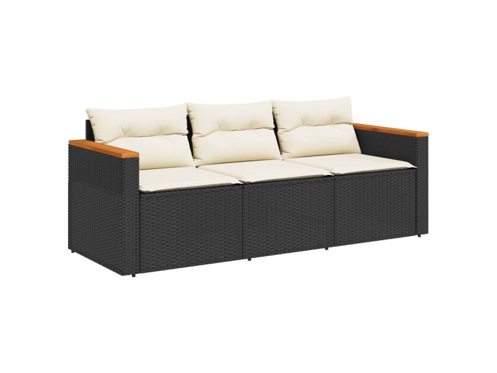 vidaXL Záhradná pohovka s vankúšmi 3-miestna čierna polyratan