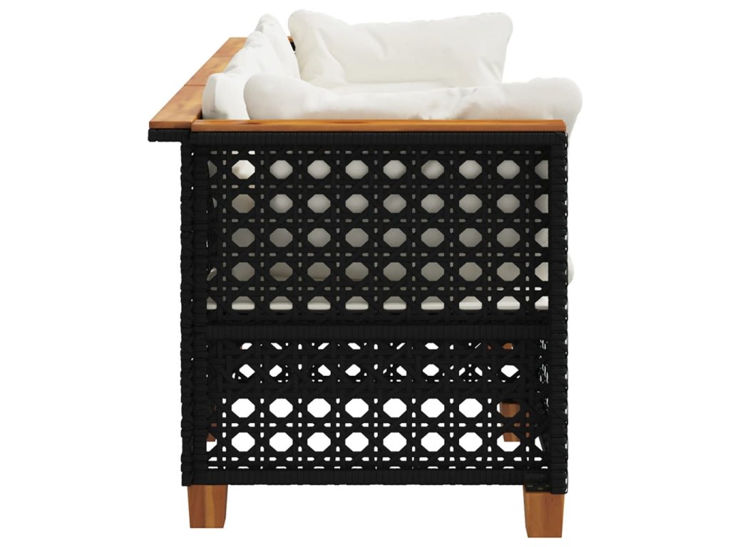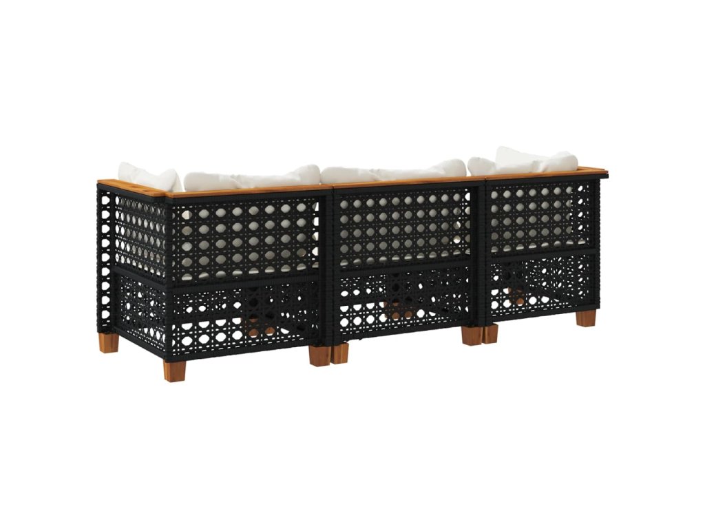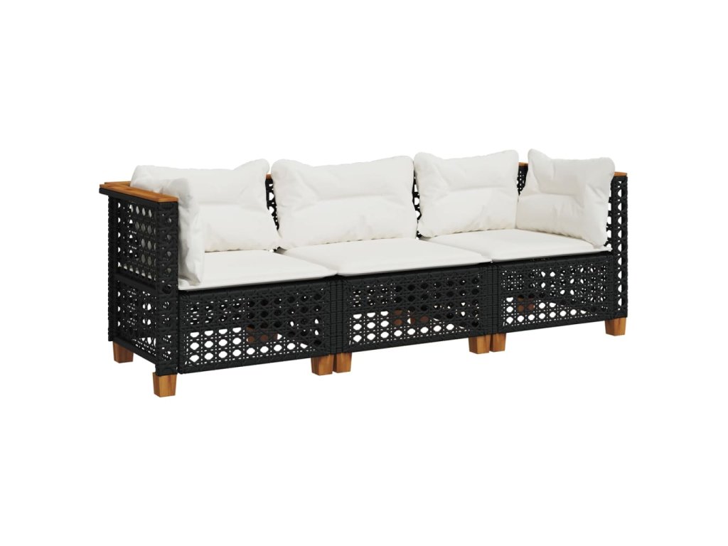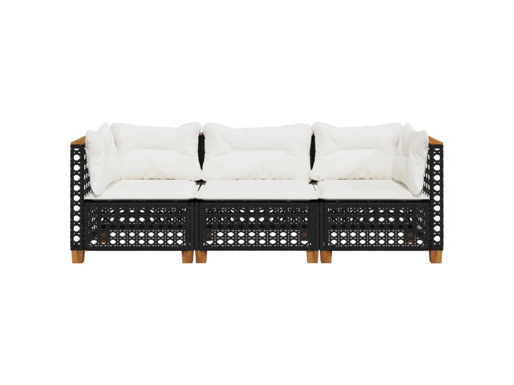 vidaXL Záhradná pohovka s vankúšmi 3-miestna čierna polyratan
