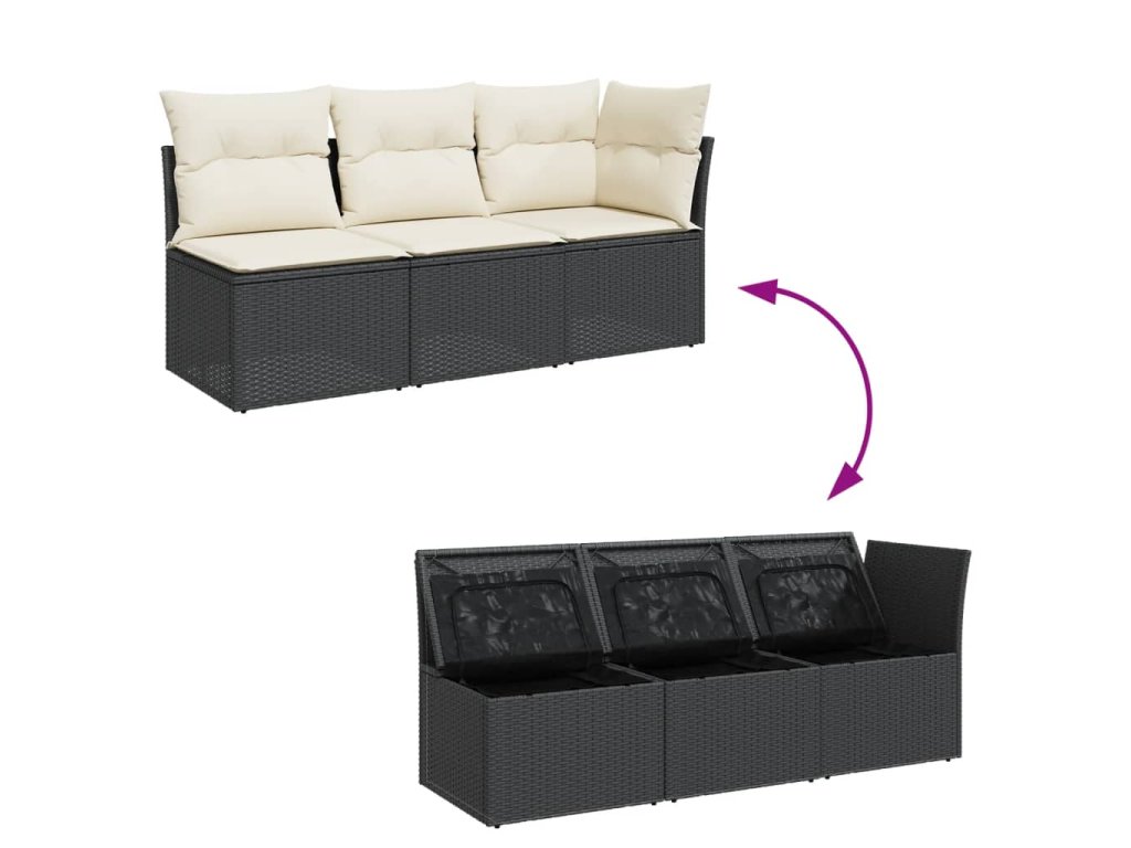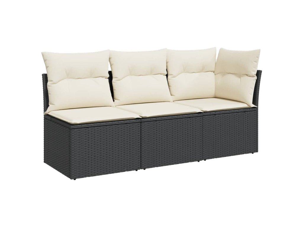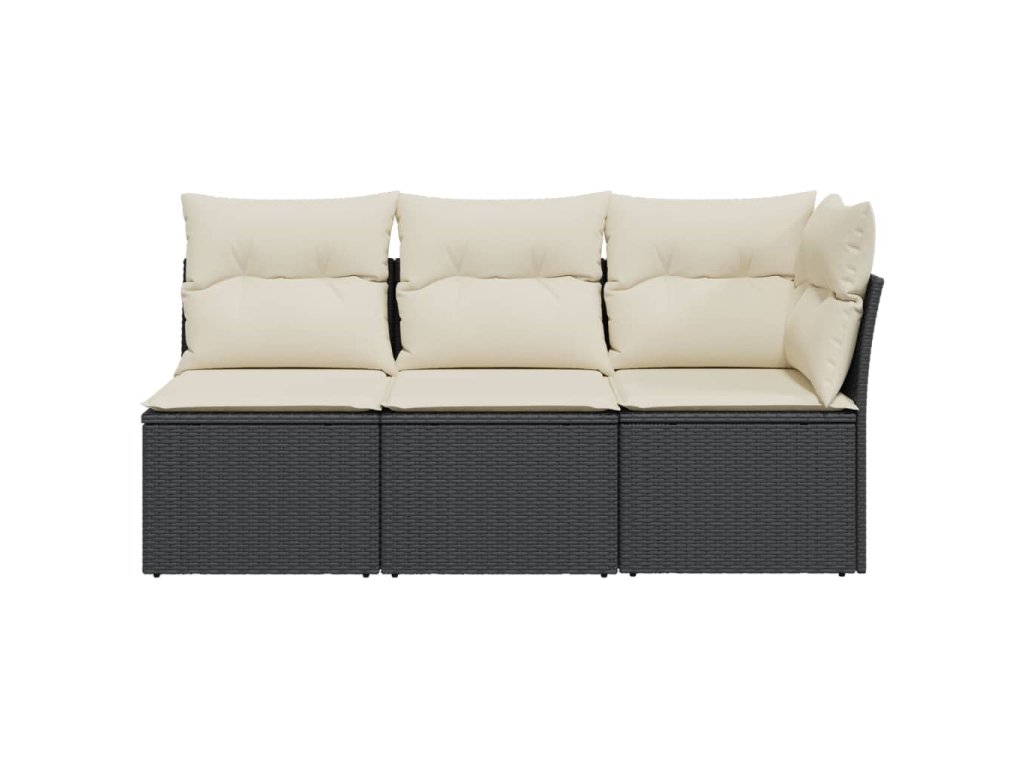 vidaXL Záhradná pohovka s vankúšmi 3-miestna čierna polyratan