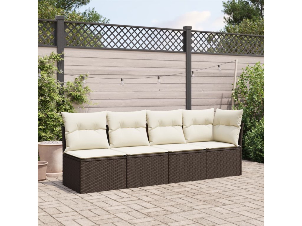 vidaXL Záhradná pohovka s vankúšmi 4-miestna hnedá polyratan