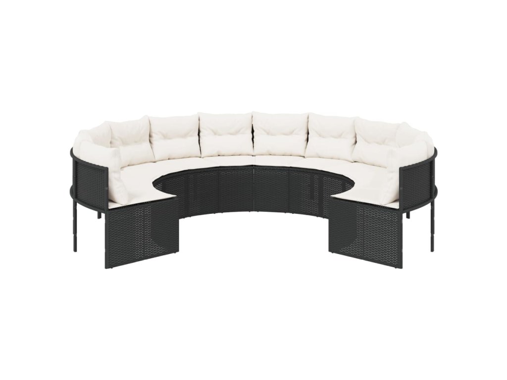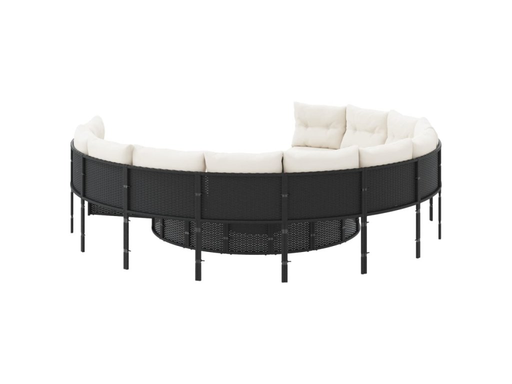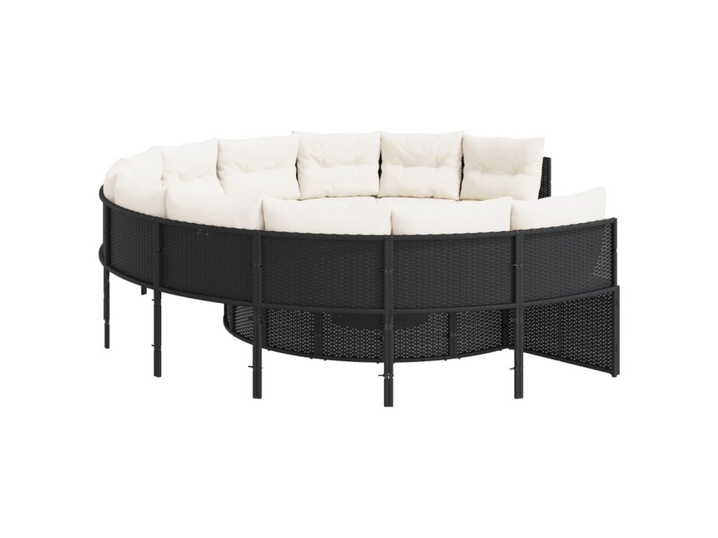 vidaXL Záhradná pohovka s vankúšmi okrúhla čierna polyratanová