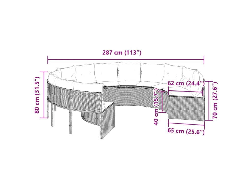 Táto okrúhla záhradná pohovka je dokonalým doplnkom na vašu záhradu, terasu alebo verandu, a poskytuje pohodlný a príjemný priestor na rozhovory s rodinou a priateľmi, alebo jednoducho na relaxáciu a užívanie si pobytu vonku.