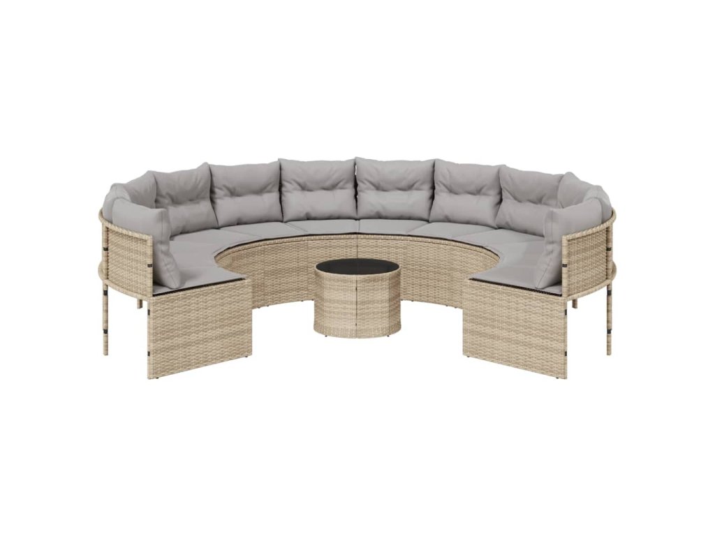 vidaXL Záhradná pohovka so stolíkom, vankúšmi okrúhla béžová polyratan