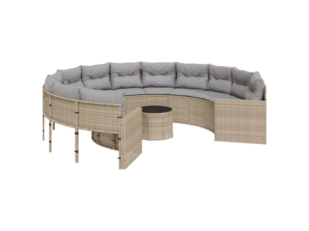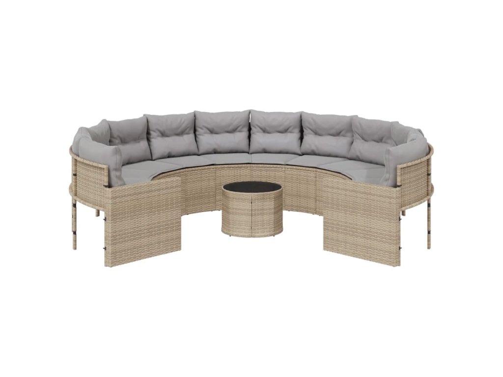 vidaXL Záhradná pohovka so stolíkom, vankúšmi okrúhla béžová polyratan
