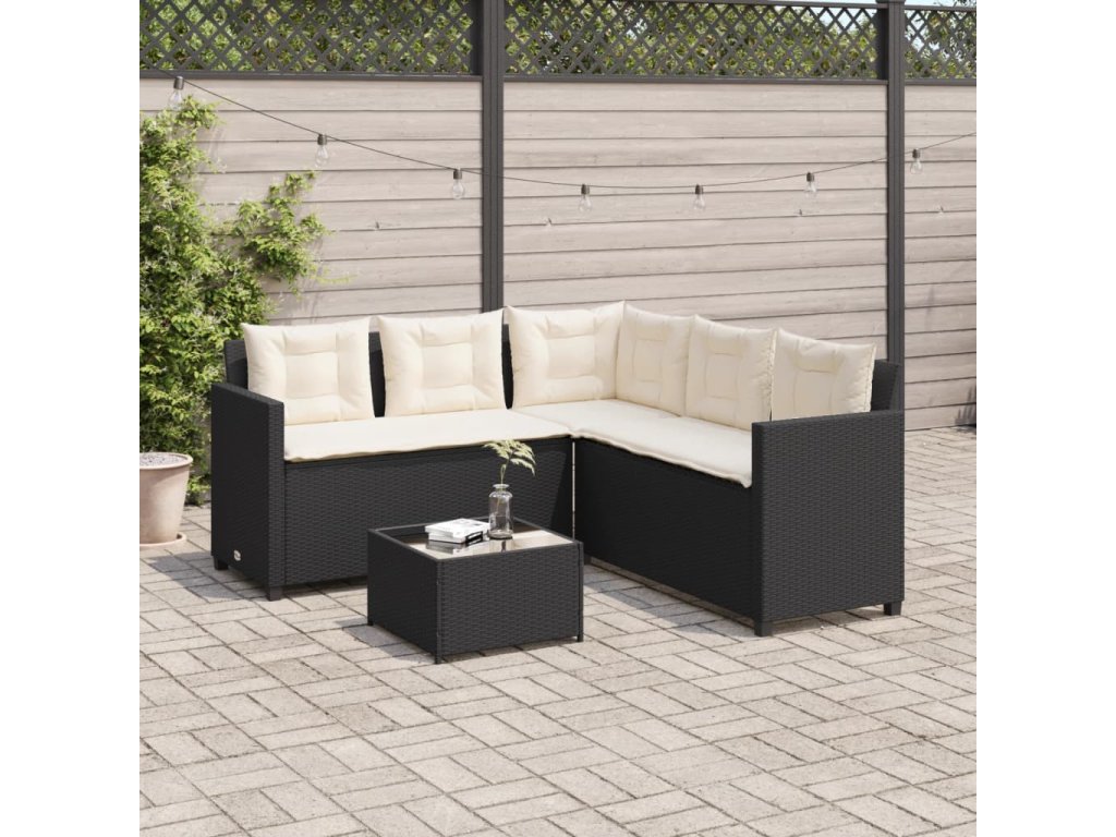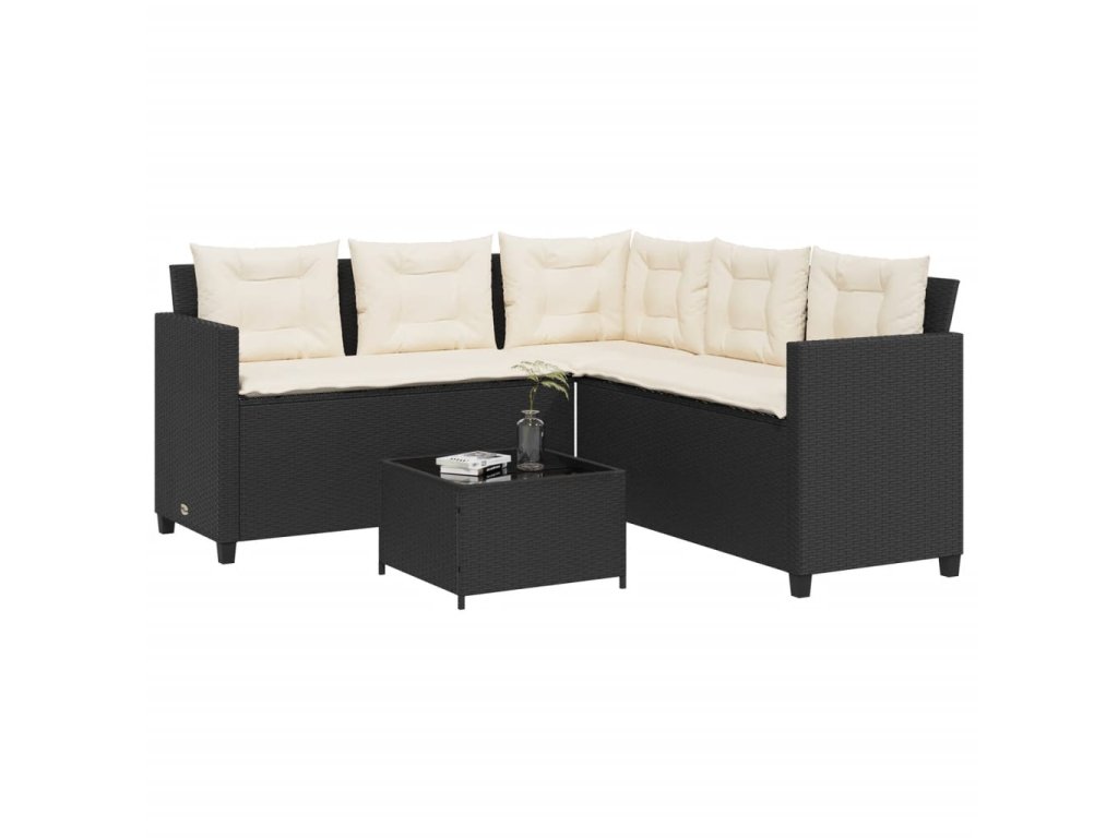 vidaXL Záhradná pohovka so stolíkom a vankúšmi tvar L čierna polyratan