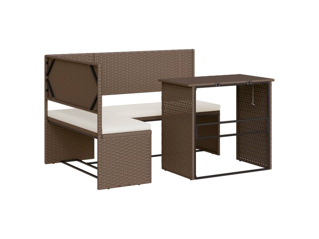 vidaXL Záhradná pohovka so stolíkom a vankúšmi tvar L hnedá polyratan