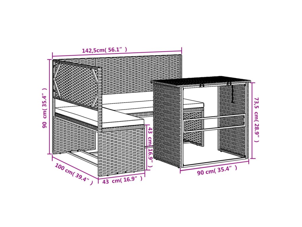 - Robustný a stabilný rám: Oceľový rám s práškovým nástrekom zaisťuje, že záhradný nábytok je pevný a stabilný pre každodenné vonkajšie použitie.