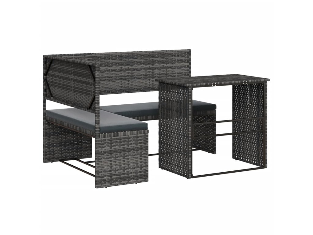 vidaXL Záhradná pohovka so stolíkom a vankúšmi tvar L sivá polyratan