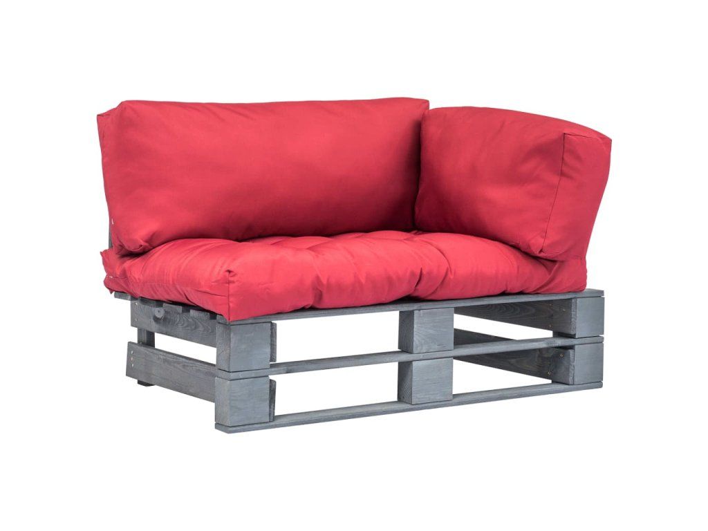 vidaXL Záhradná pohovka z paliet, červené podložky, borovica