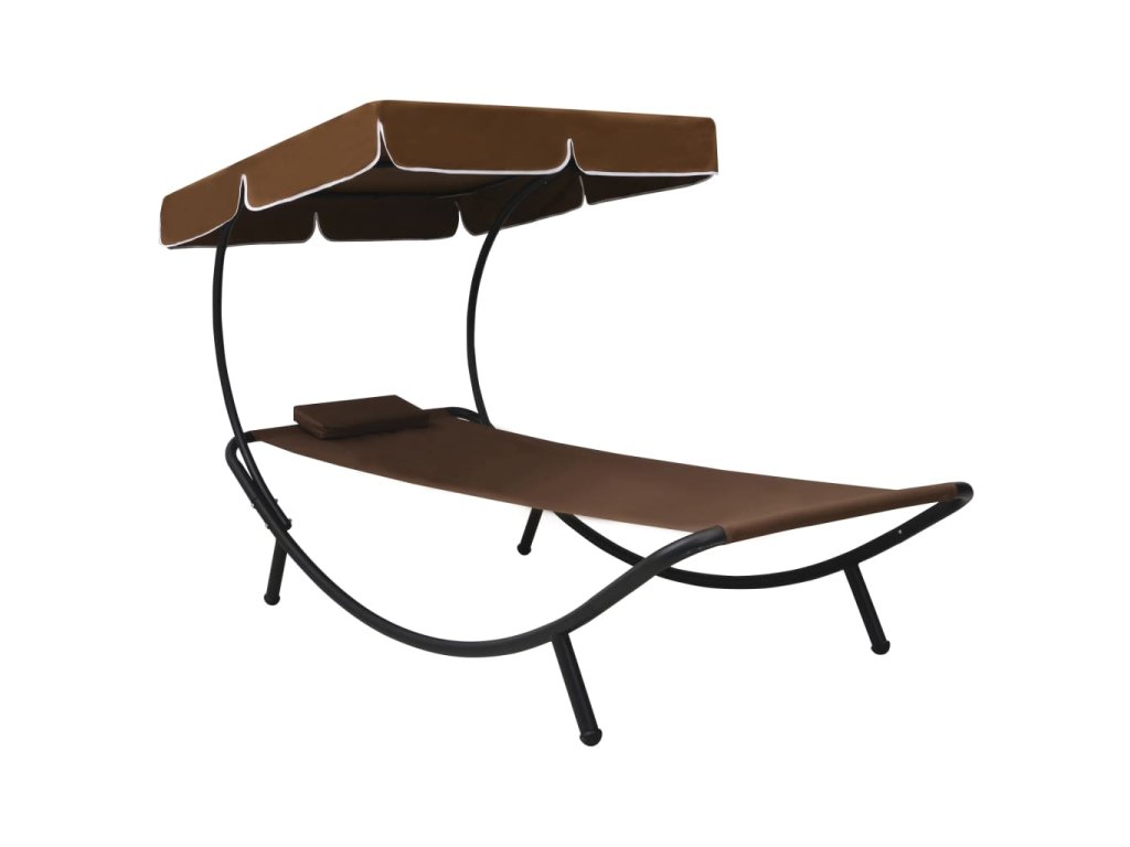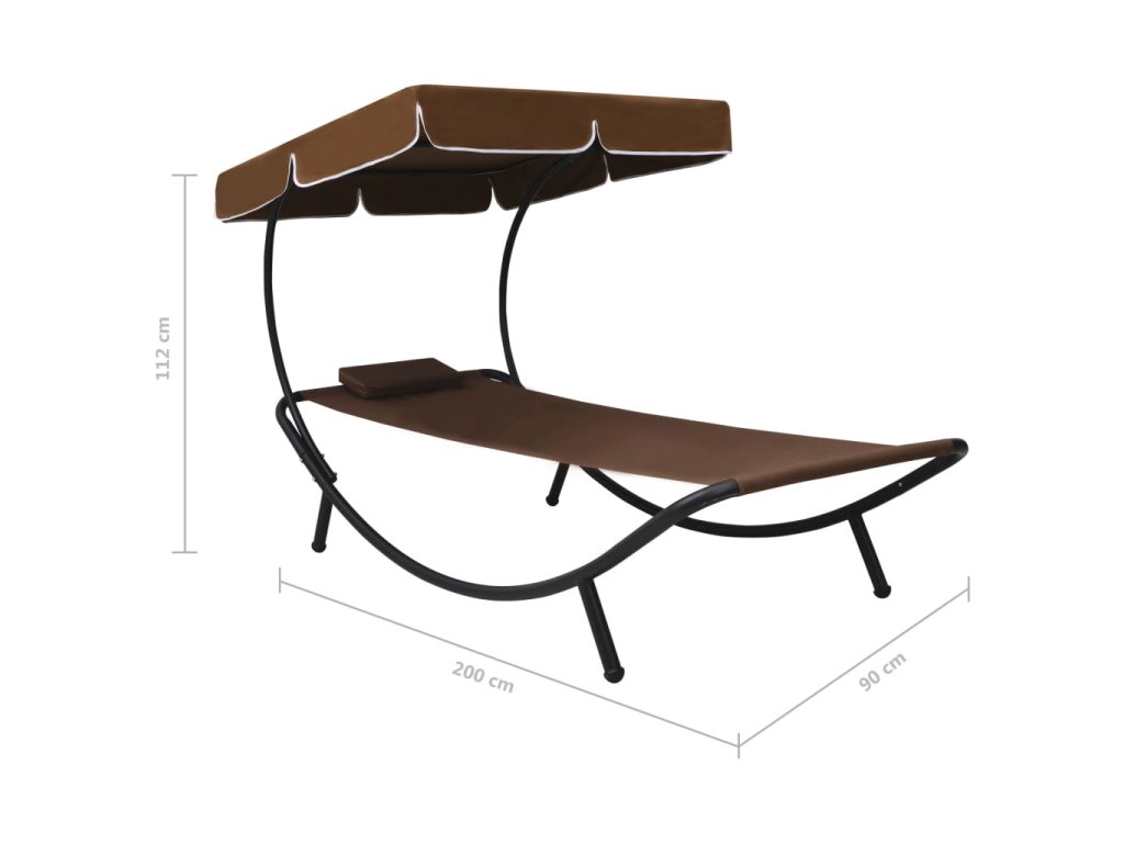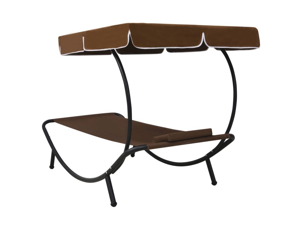 vidaXL Záhradná posteľ s baldachýnom a vankúšom, hnedá