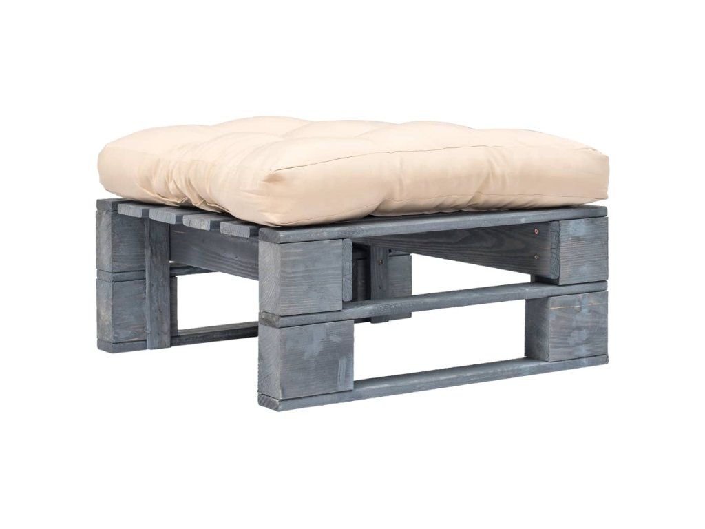 vidaXL Záhradná taburetka z paliet, piesková podložka, sivé drevo