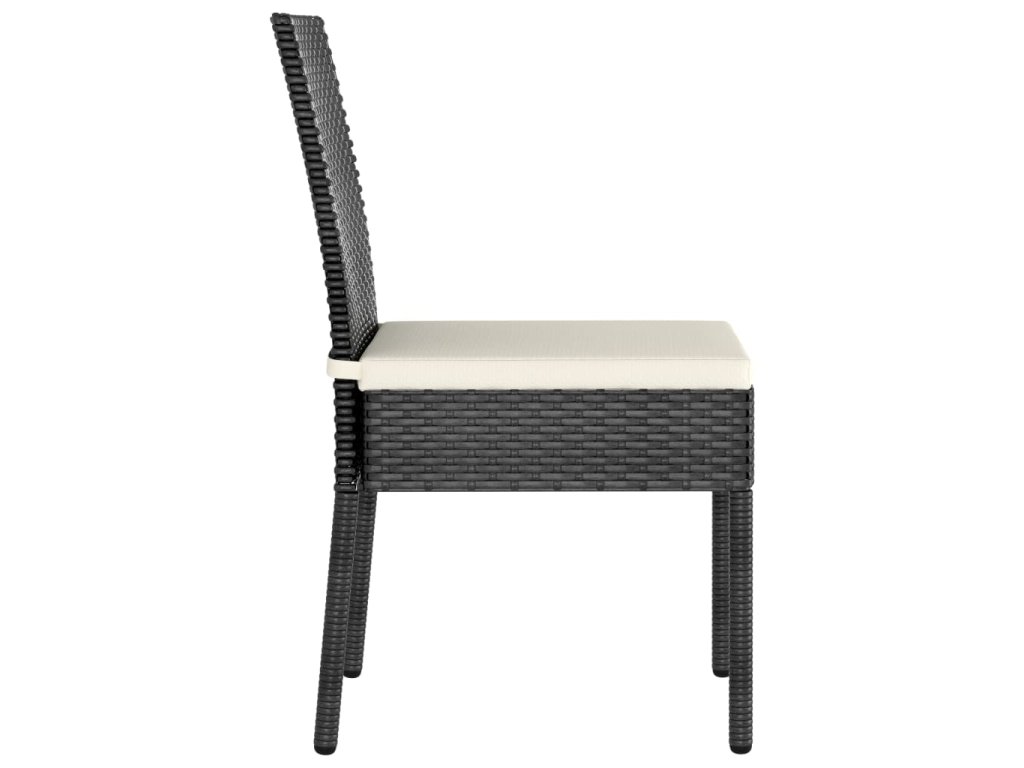 Vonkajšie stoličky sú vyrobené z polyratanu, takže sa dajú ľahko očistiť a sú odolné voči poveternostným vplyvom. Oceľové rámy s čiernou práškovou povrchovou úpravou sú stabilné a trvácne. Jedálenské stoličky majú ľahkú konštrukciu, takže sa dajú jednoducho presunúť a sú vhodné do vonkajších priestorov. Podložky na sedadlo, ktoré sú súčasťou balenia, poskytujú potrebné pohodlie počas sedenia.