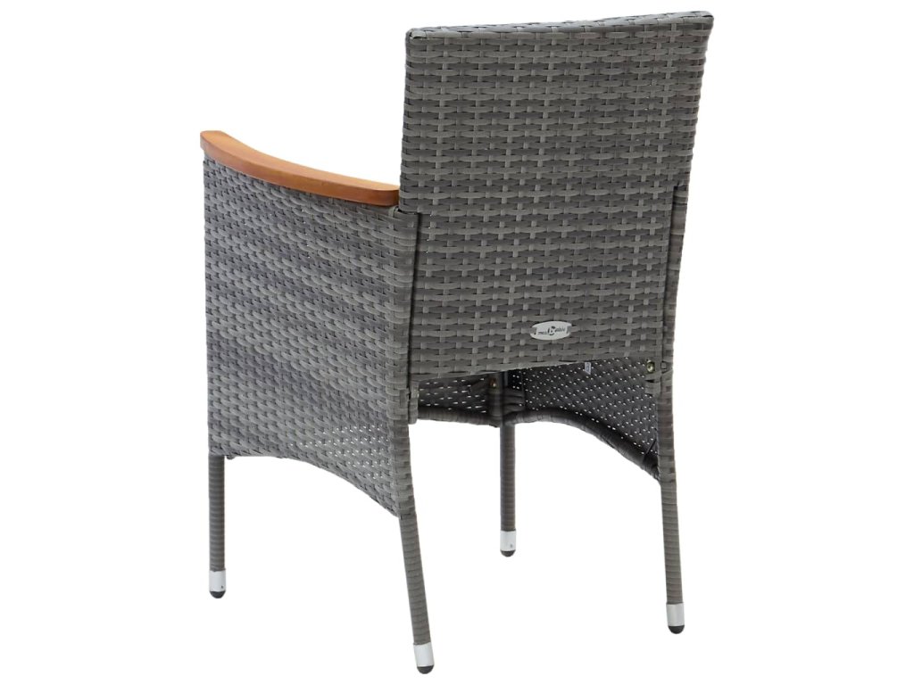 Robustný oceľový rám je obalený v PE ratane, ktorý je odolný voči poveternostným vplyvom. Táto sada záhradných stoličiek je odolná voči hrdzi a plesniam, a poskytne vám roky kvalitného odpočinku. Táto súprava vonkajších stoličiek, ktorá má zaoblené operadlo a lakťovú opierku, má ergonomický tvar pre maximálne pohodlie. Opierky sú nádherne zdobené masívnym akáciovým drevom s olejovou povrchovou úpravou, čo im dodáva rustikálny šarm. Pevné polstrované vankúše navyše poskytujú maximálne pohodlie počas sedenia.