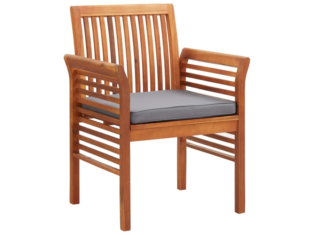 Vďaka drevenému akáciovému rámu s povrchovou úpravou odolnou voči poveternostným vplyvom prináša táto akáciová stolička klasický vzhľad na vašu terasu alebo záhradu a vášmu vonkajšiemu priestoru zároveň dodáva prirodzený pocit. Doslova sa posaďte a relaxujte, vďaka hlbokej sedačke a útulnej penovej podložke môžete oddych stráviť vonku vo vynikajúcom pohodlí. Vankúš odolný voči vode umožňuje jednoduché čistenie. Montáž stoličky je jednoduchá.