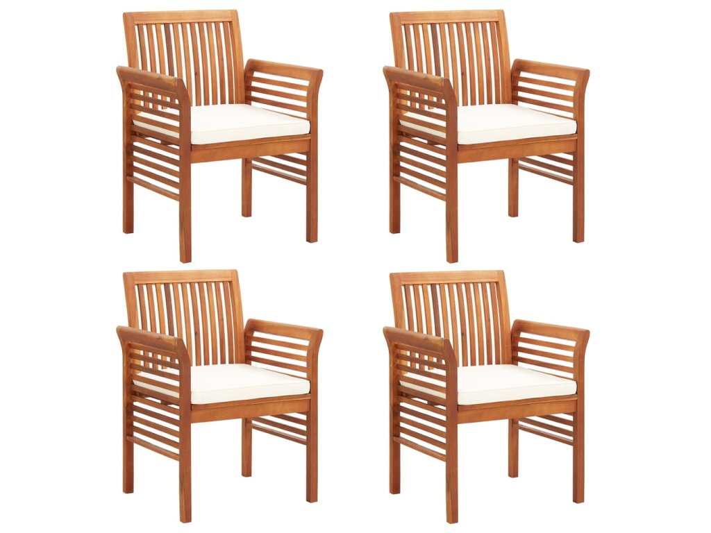vidaXL Záhradné jedálenské stoličky s vankúšmi 4 ks akáciový masív