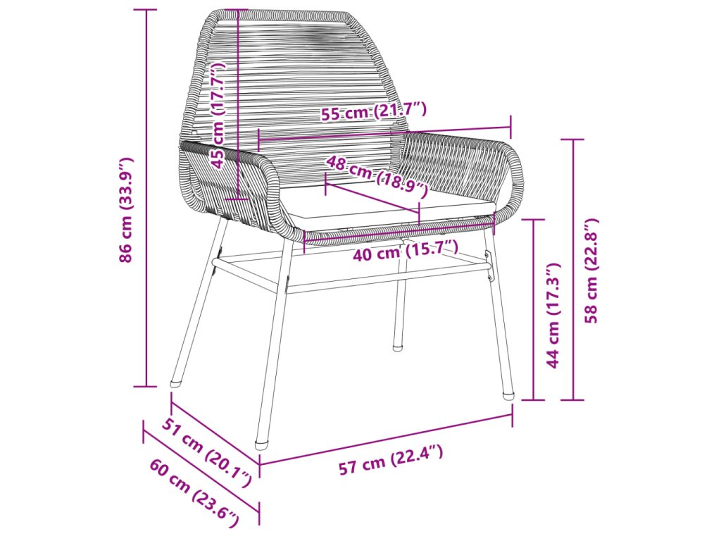 - Robustný a stabilný rám: Oceľový rám s práškovým nástrekom zaisťuje, že záhradný nábytok je pevný a stabilný pre každodenné vonkajšie použitie.