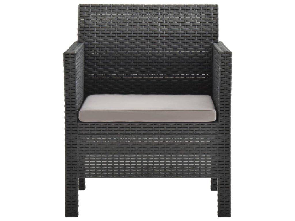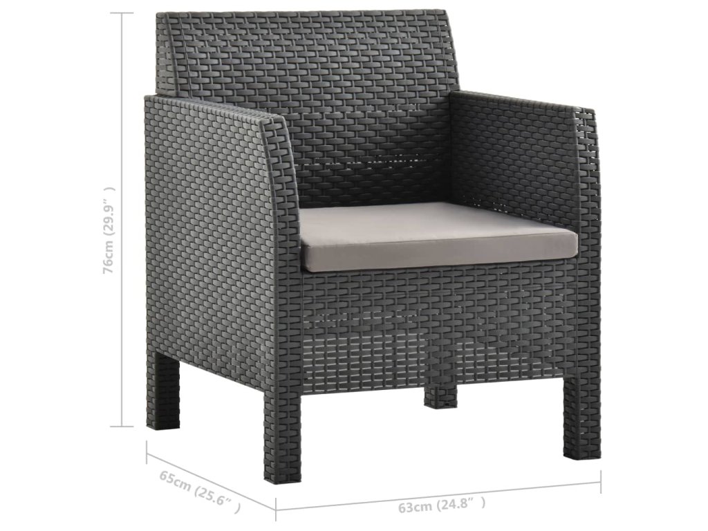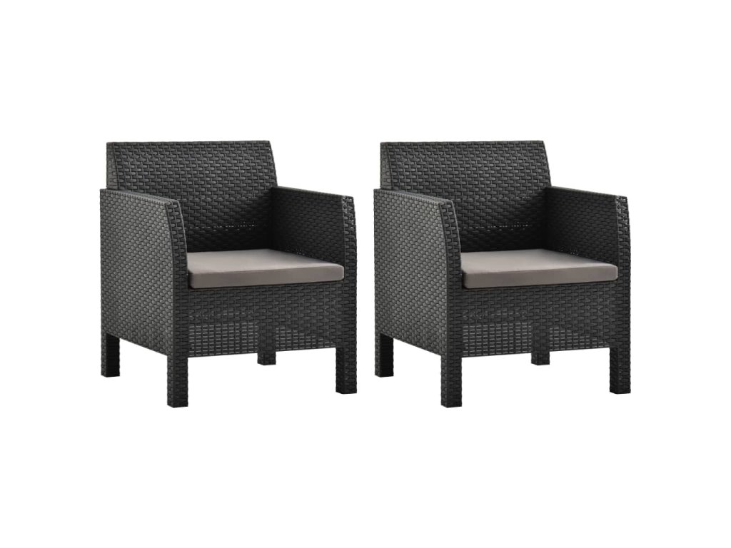 vidaXL Záhradné kreslá s podložkami 2 ks, PP ratan, antracitové