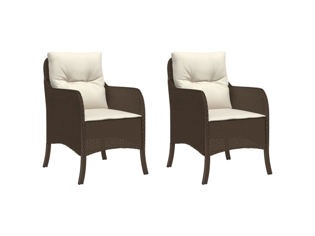 vidaXL Záhradné kreslá s podložkami 2 ks hnedé polyratan
