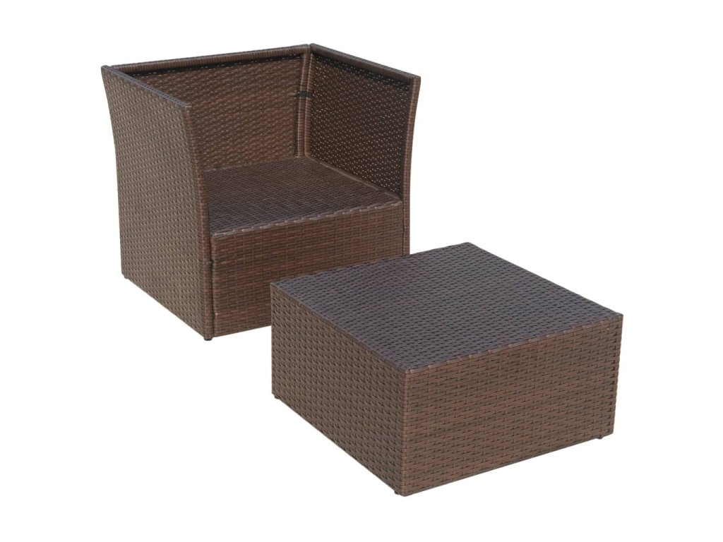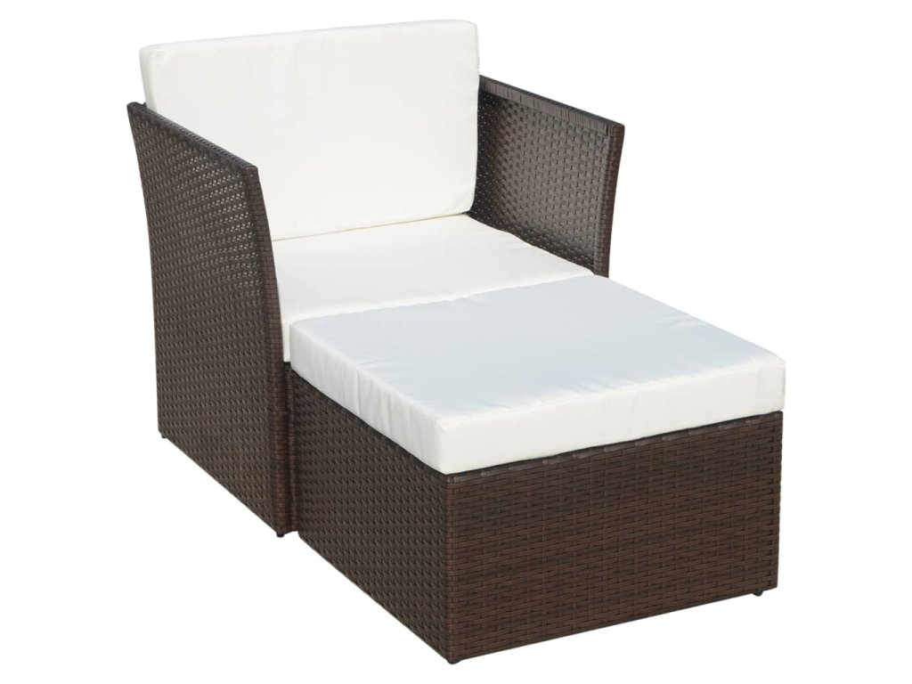 vidaXL Záhradné kreslo s taburetkou, polyratan, hnedé