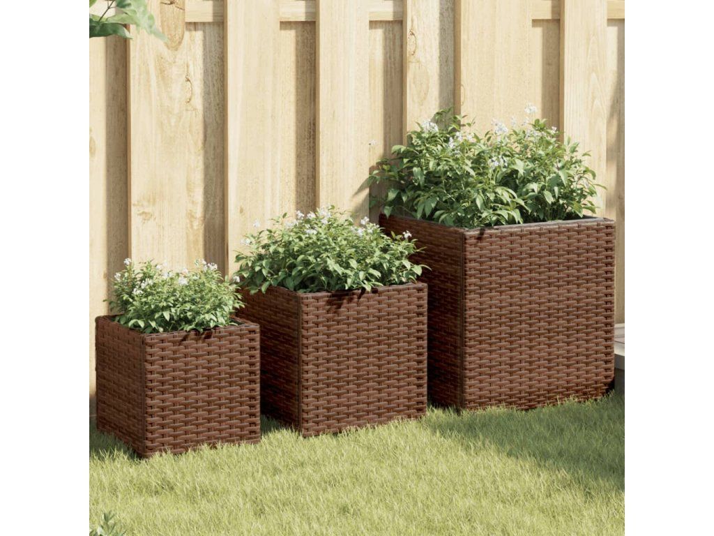 vidaXL Záhradné kvetináče 3 ks hnedé polyratan