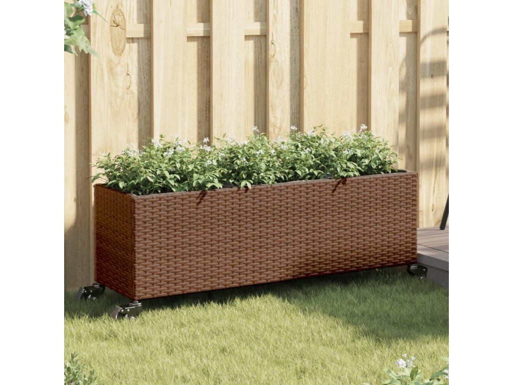 vidaXL Záhradné kvetináče kolieska 2 ks hnedé 107x32x38 cm polyratan