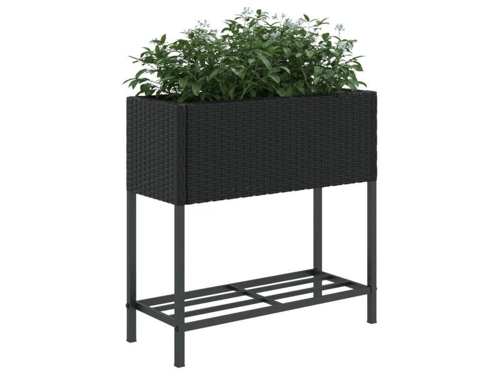 vidaXL Záhradné kvetináče s policou 2ks čierne 70x28x70 cm polyratan