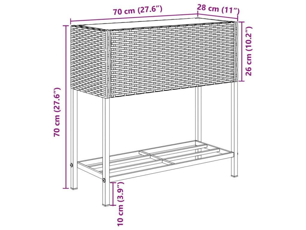 - Praktická polica: Záhradný kvetináč je navrhnutý s policou, ktorá vám umožní uložiť pôdu a príslušenstvo pre rastliny na dosah ruky. Okrem toho polička zabraňuje tomu, aby sa voda, tráva a nečistoty zo zeme dotýkali záhona, aby bol čistý a krásny.