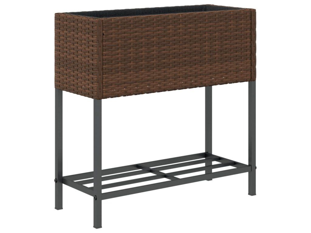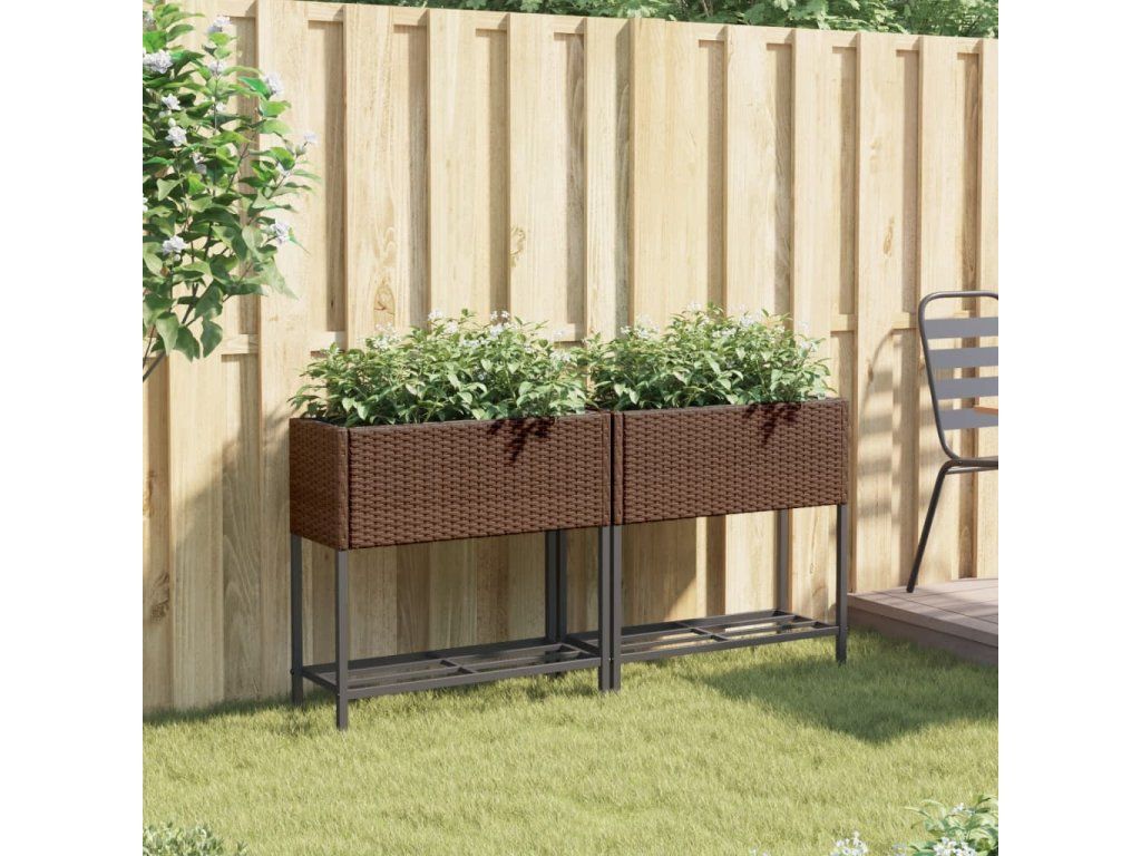 vidaXL Záhradné kvetináče s policou 2ks hnedé 70x28x70 cm polyratan