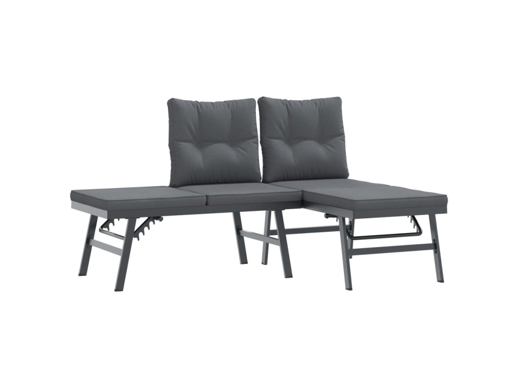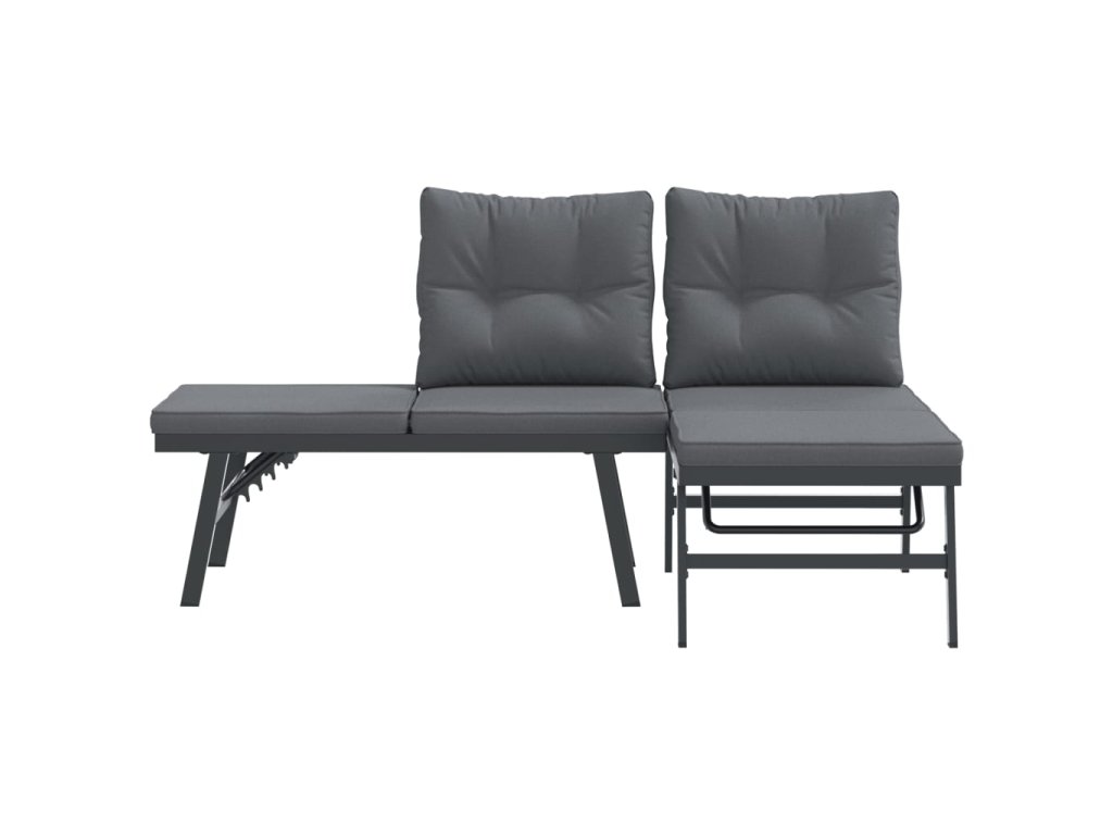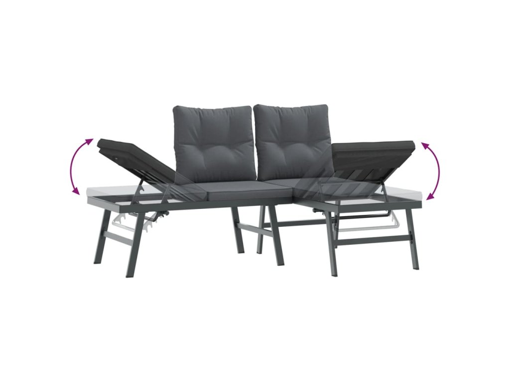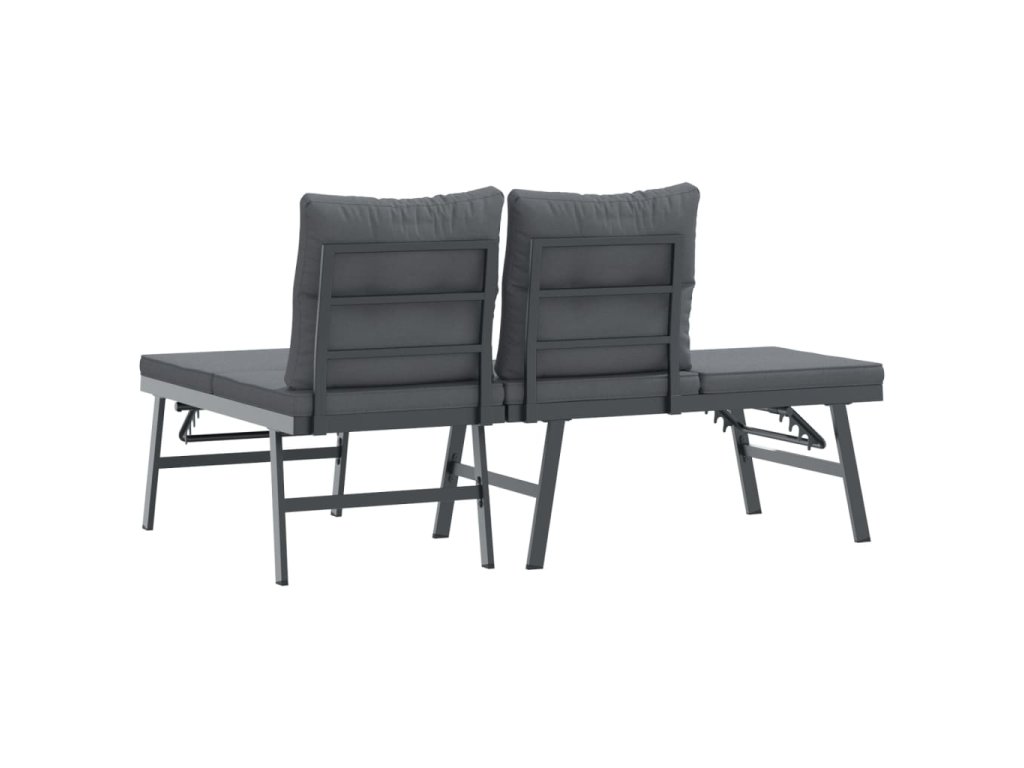 vidaXL Záhradné lavičky s vankúšmi 2 ks čierne práškovaná oceľ