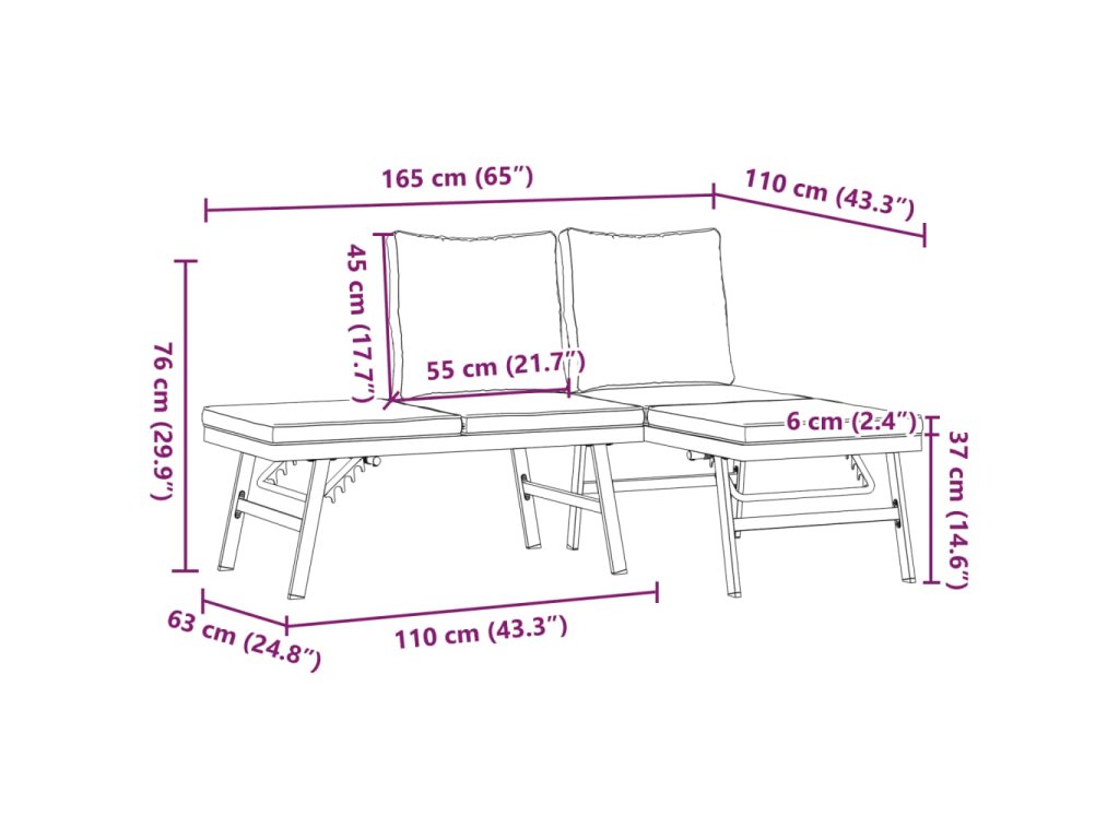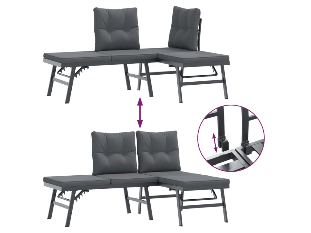 - Nastaviteľné bočné sedadlo: Malý bočný sedák každej pohovky sa dá zdvihnúť, čím sa pohovka zmení na pohodlné ležadlo na relaxáciu. Nastaviteľné sedadlo možno nastaviť do 3 rôznych úrovní, aby vyhovovalo vašim potrebám pri čítaní, opaľovaní alebo spánku.