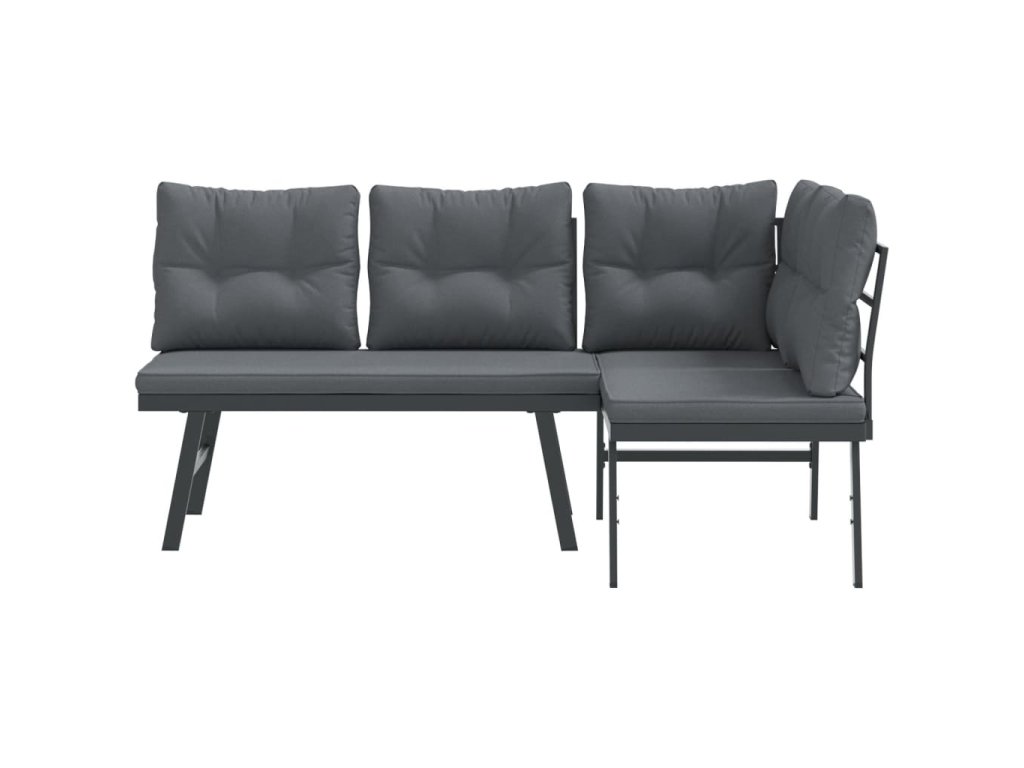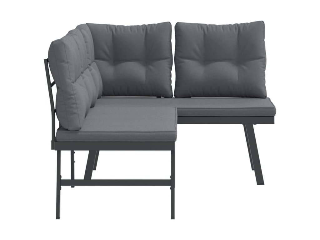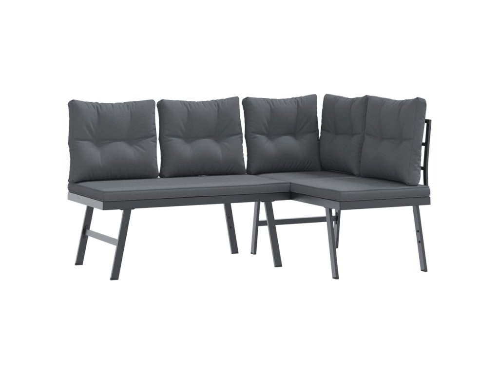vidaXL Záhradné lavičky s vankúšmi 2 ks čierne práškovaná oceľ