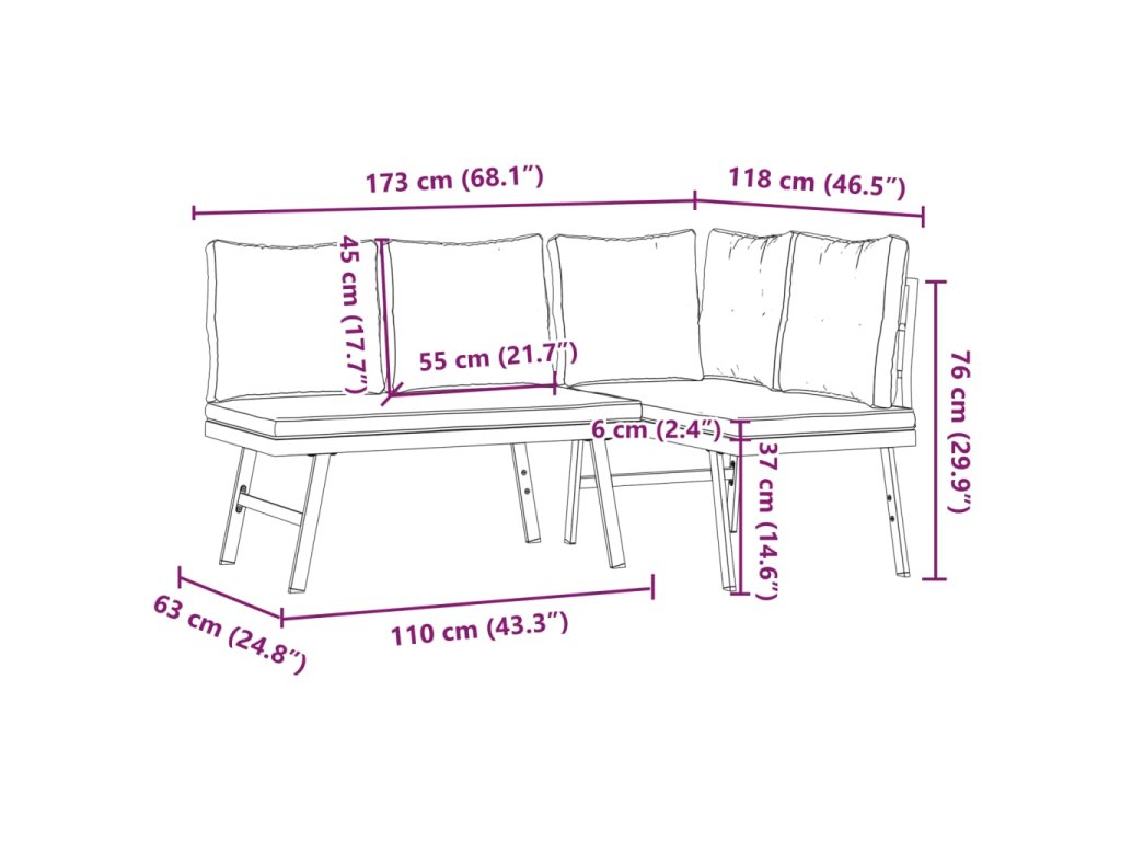 - Rozmery (2 opierky): 110 x 63 x 76 cm (Š x H x V)