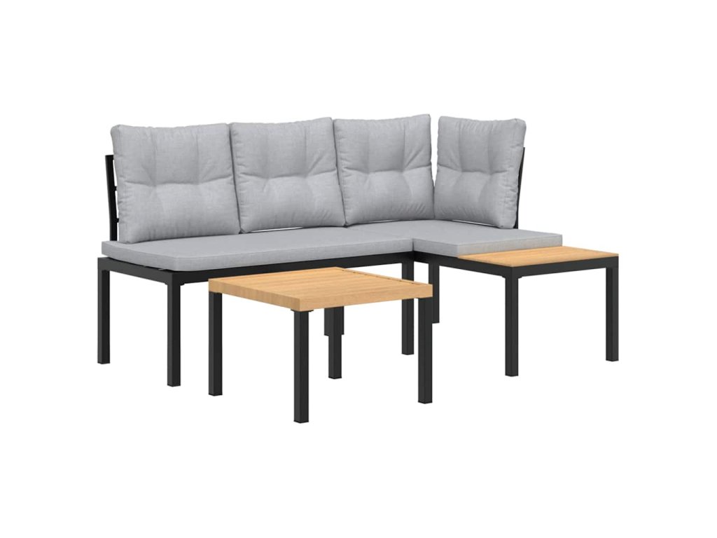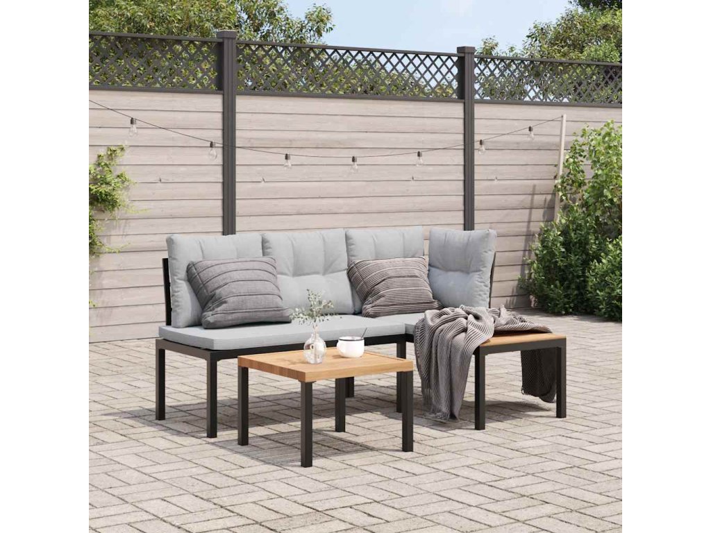 vidaXL Záhradné lavičky s vankúšmi 3 ks čierne práškovaná oceľ