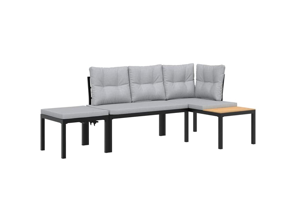 vidaXL Záhradné lavičky s vankúšmi 3 ks čierne práškovaná oceľ