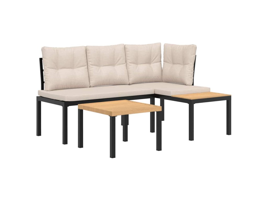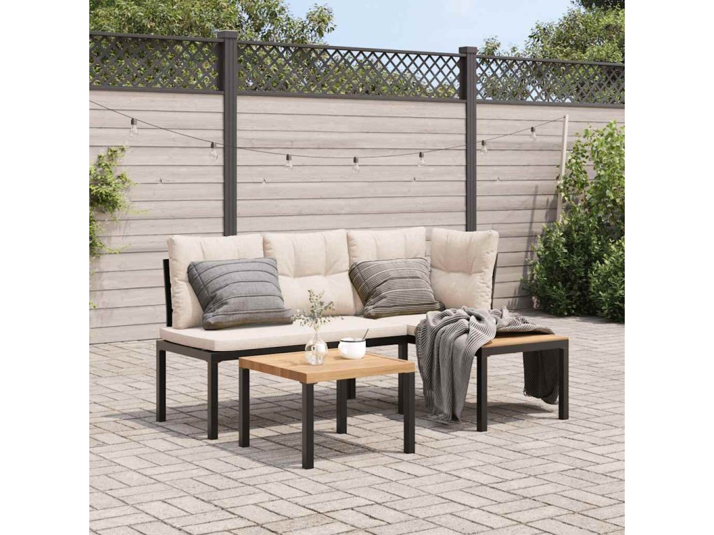 vidaXL Záhradné lavičky s vankúšmi 3 ks čierne práškovaná oceľ