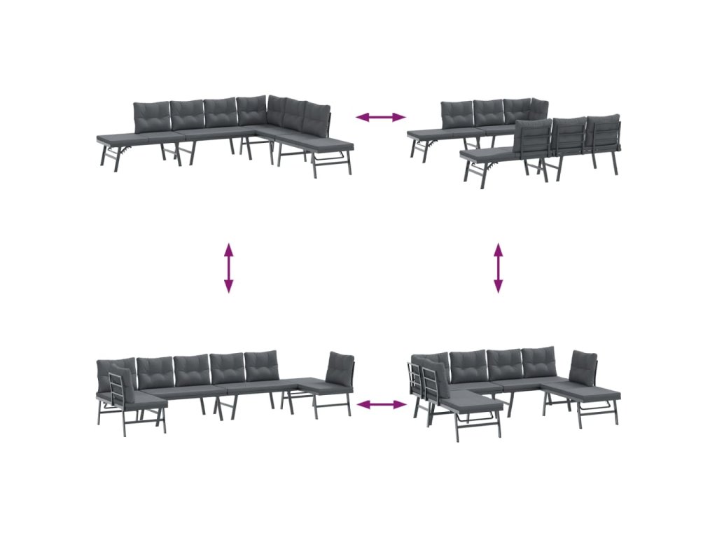 - Nastaviteľné bočné sedadlo: Malý bočný sedák každej pohovky sa dá zdvihnúť, čím sa pohovka zmení na pohodlné ležadlo na relaxáciu. Nastaviteľné sedadlo možno nastaviť do 3 rôznych úrovní, aby vyhovovalo vašim potrebám pri čítaní, opaľovaní alebo spánku.