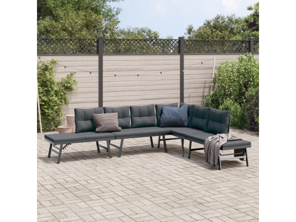 vidaXL Záhradné lavičky s vankúšmi 4 ks čierne práškovaná oceľ