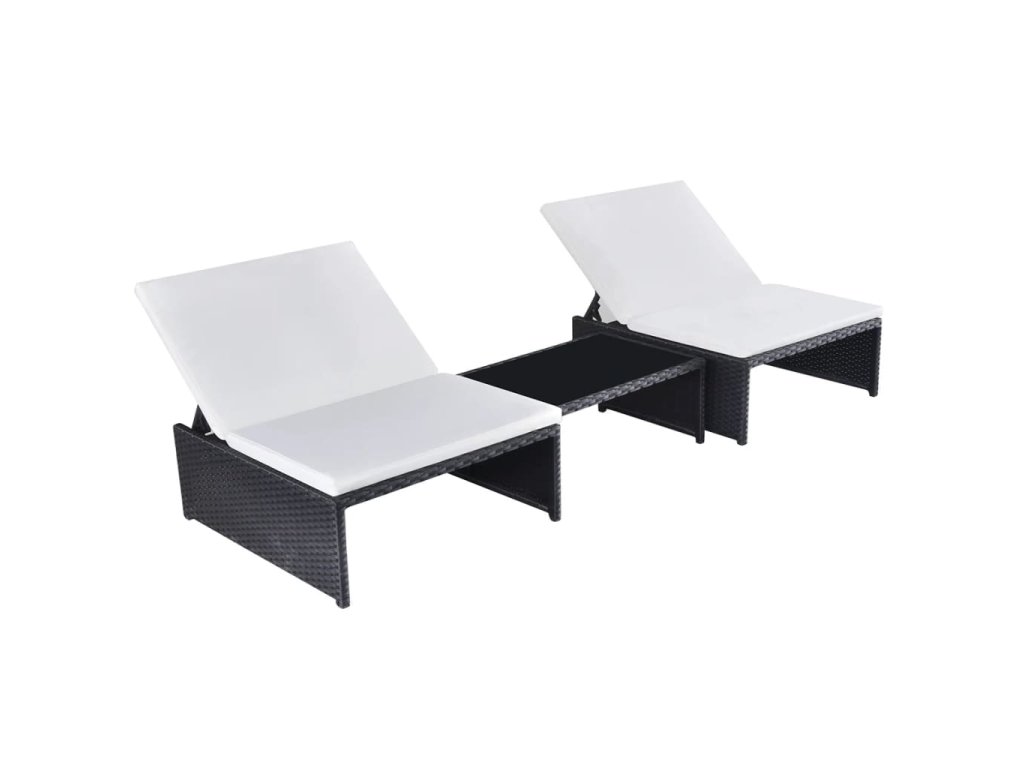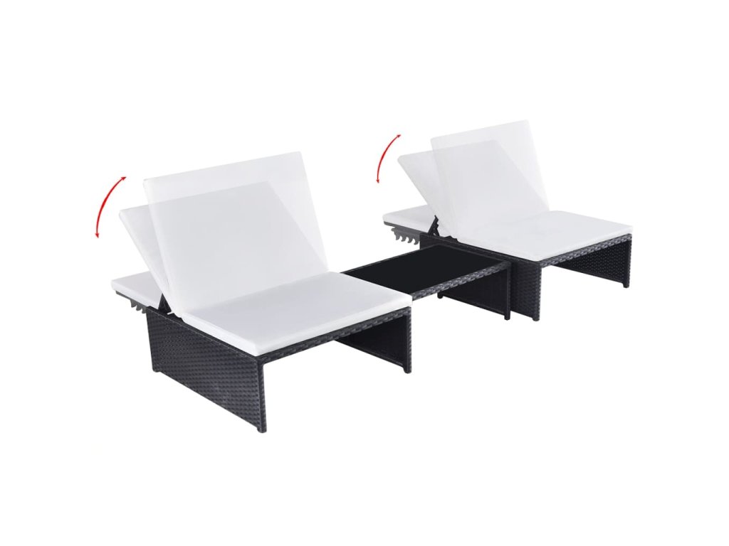 vidaXL Záhradné ležadlá 2 ks so stolíkom, polyratan, čierne