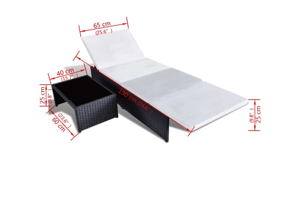 - Rozmery ležadla: 190 x 65 cm (D x Š) - keď sú 2 kreslá úplne roztiahnuté a spojené