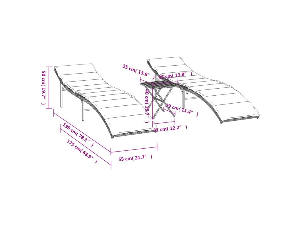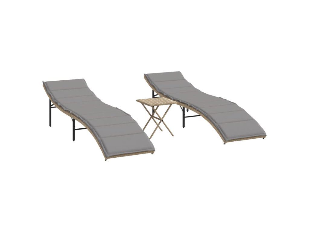 vidaXL Záhradné ležadlá 2 ks so stolíkom béžové polyratan