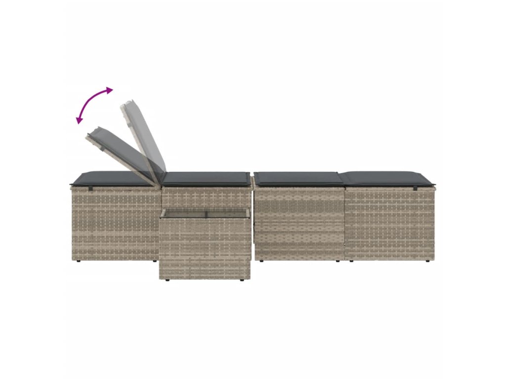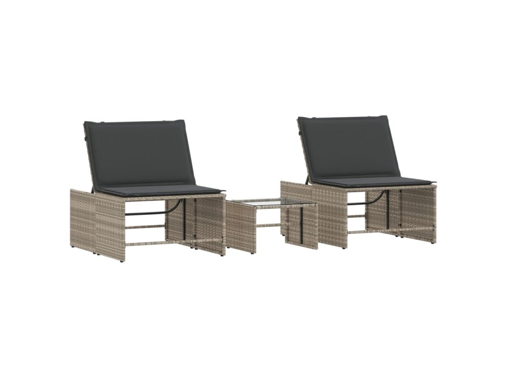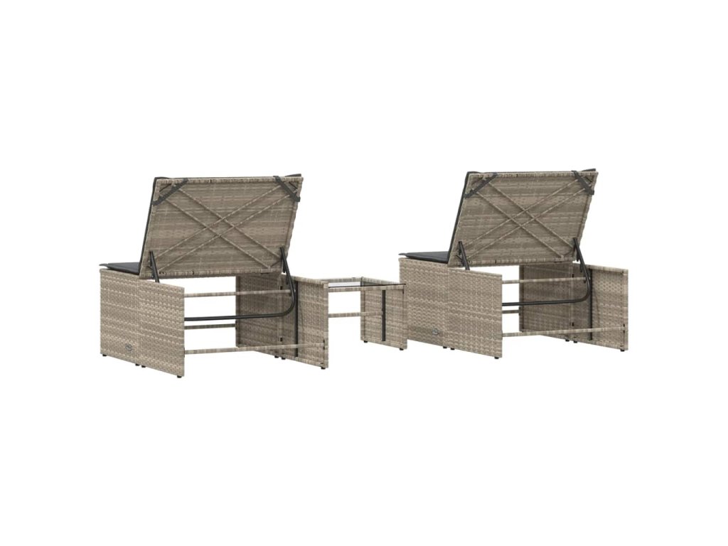 vidaXL Záhradné ležadlá 2 ks so stolíkom svetlosivé polyratan