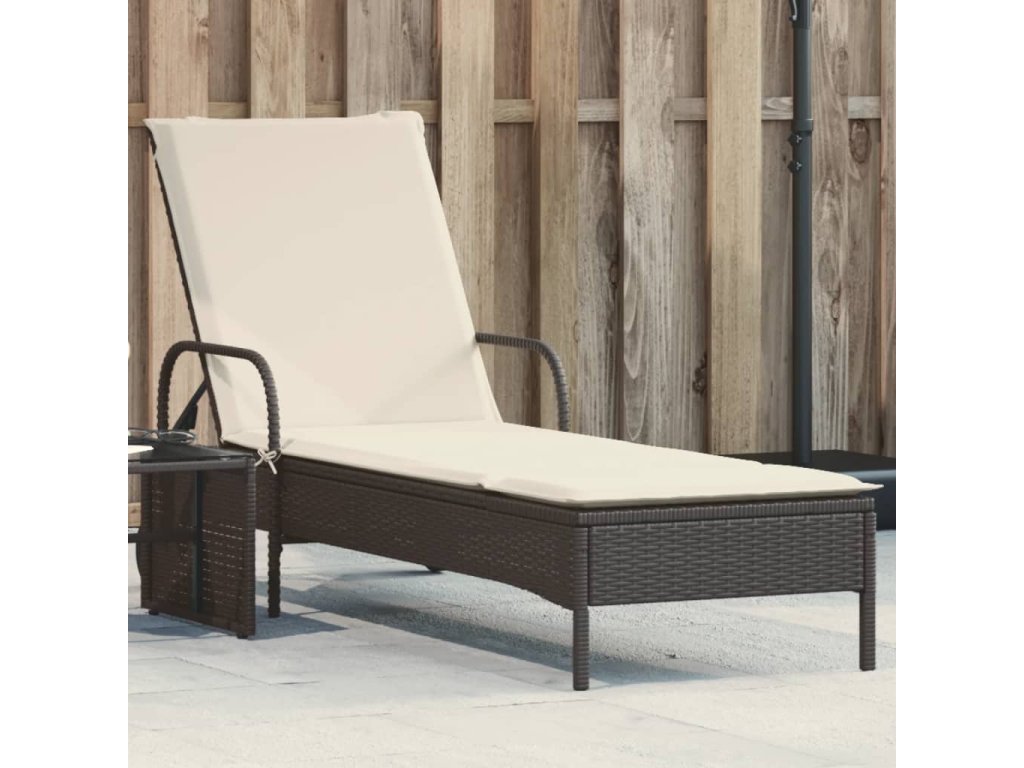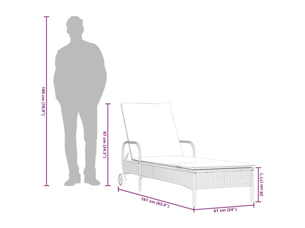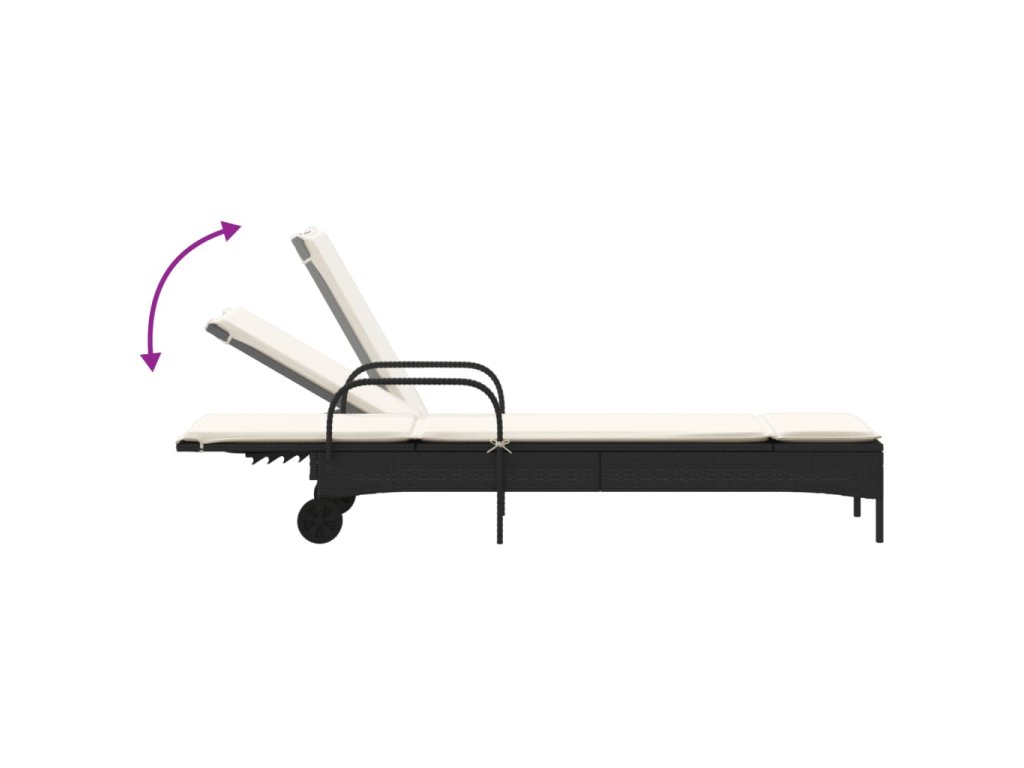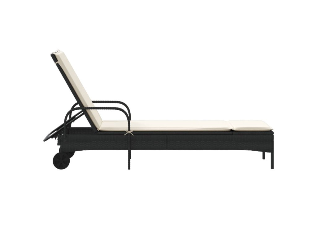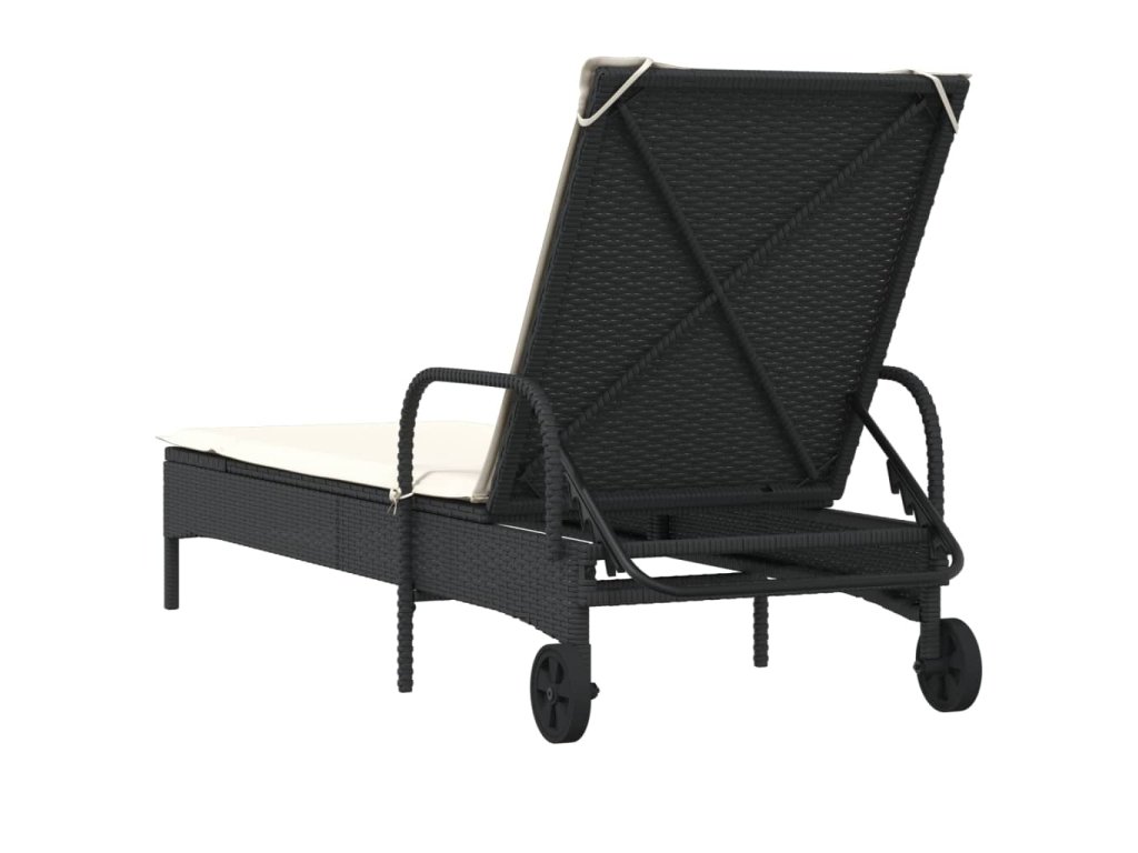 vidaXL Záhradné ležadlo s kolieskami a podložkou čierne polyratan